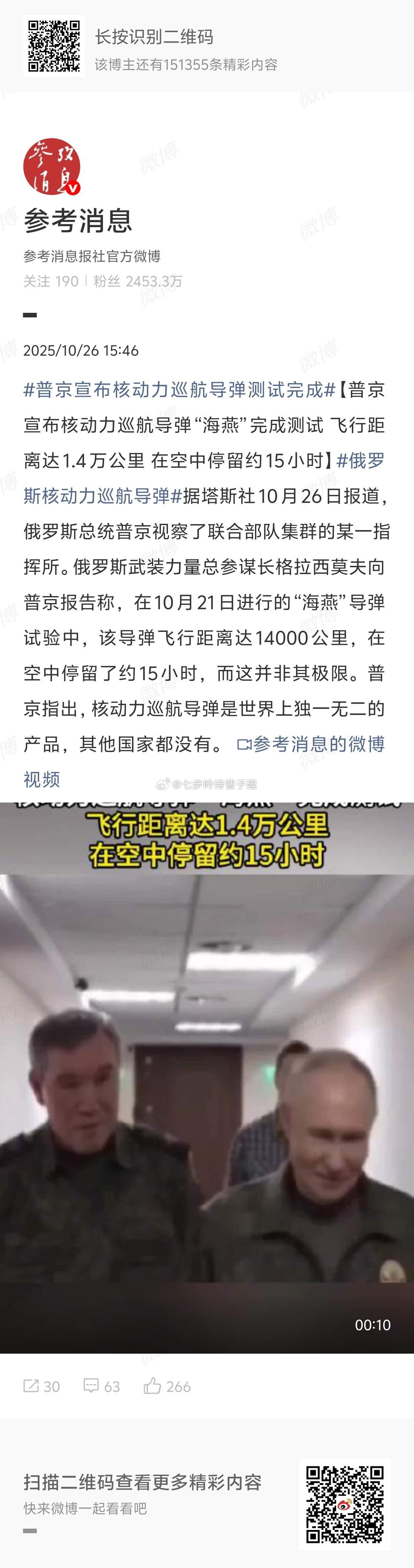 普京宣布核动力巡航导弹测试完成不是我不信,你试试看?
