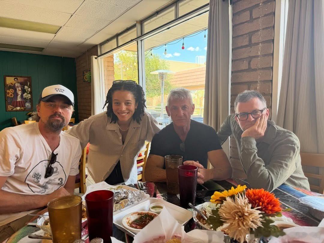 莱昂纳多·迪卡普里奥、蔡斯·英菲尼迪、西恩·潘和保罗·托马斯·安德森的一张合照