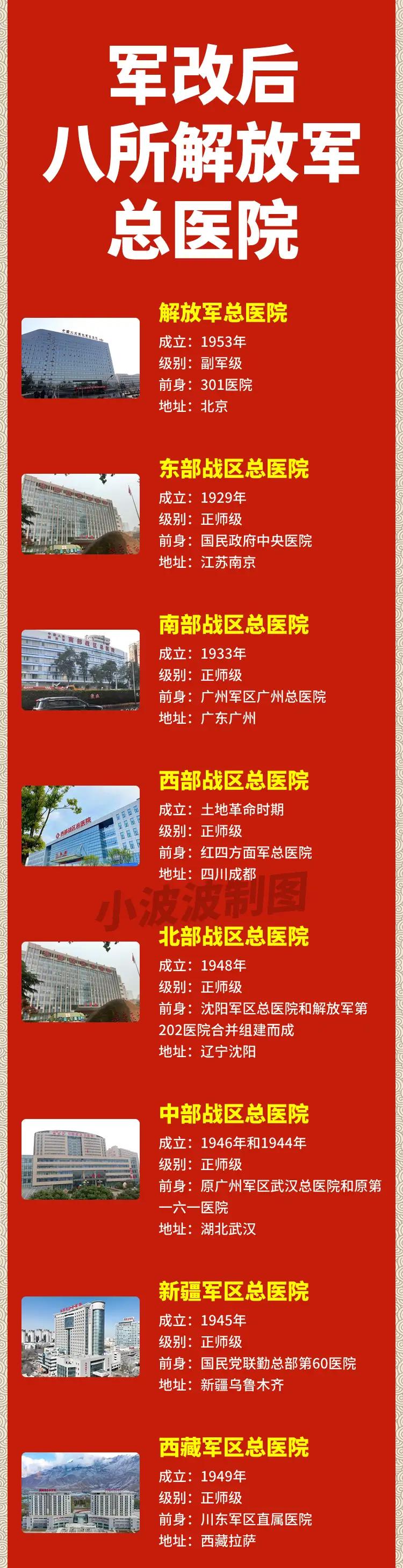 我国八所解放军总医院中,成立最早的是哪一个? 是东部战区总医院,这个医院的前身是1929年创立的国民政府中央医院。 当时国民政府中央医院,是全国第一所由国人自主创办的国立西医院。 这所医院在抗战期间辗转多地,战胜日本之后,回迁至南京。 1949年解放南京时,医院由我们解放军接管,并更名为华东军区医院。 后来又陆续改名为南京军区总医院、东部战区总医院。 也就是说2018年军改后,八所解放军总医院中,历史最悠久的就是东部战区总医院。