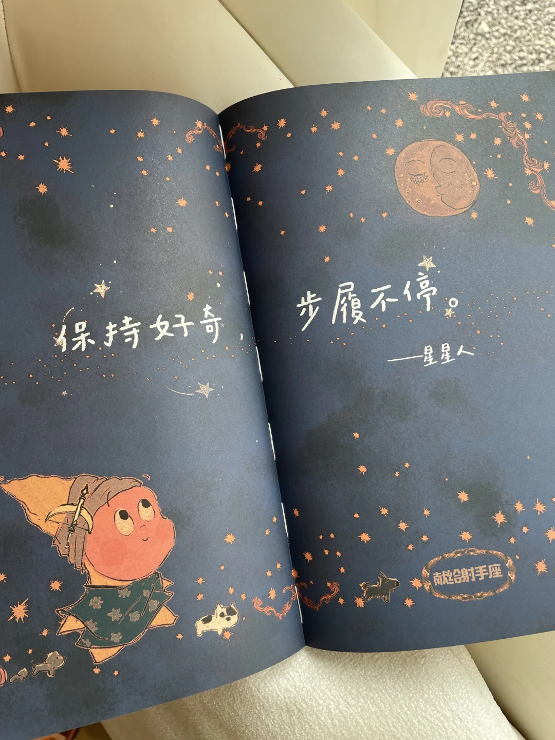 🔴关掉所有的电子产品,沉浸的阅读这套绘本会更加的触动内心,绘本的主角是一个可爱的星星人,大大的眼睛,圆圆的脸蛋,带着尖尖的帽子,帽子的顶端有一颗闪闪发亮的星星,他诞生于一片漆黑之中,没人知道他在黑暗中孕育了多久,只知道现在的世界星光璀璨