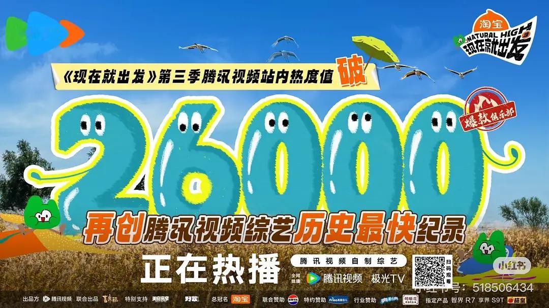 现在就出发热度破26000了,破鹅综艺历史最快记录,拉新也很厉害,周榜第二!