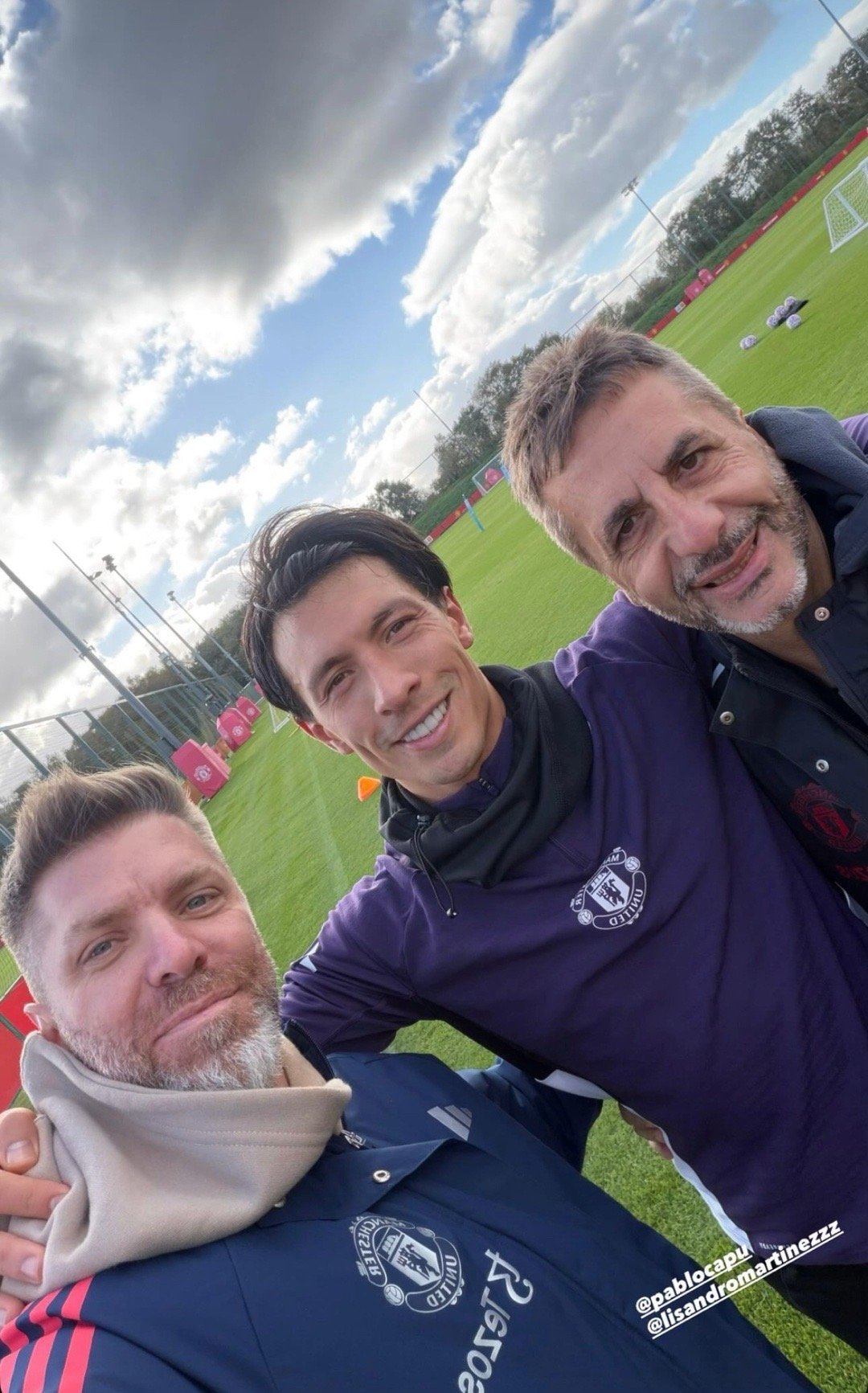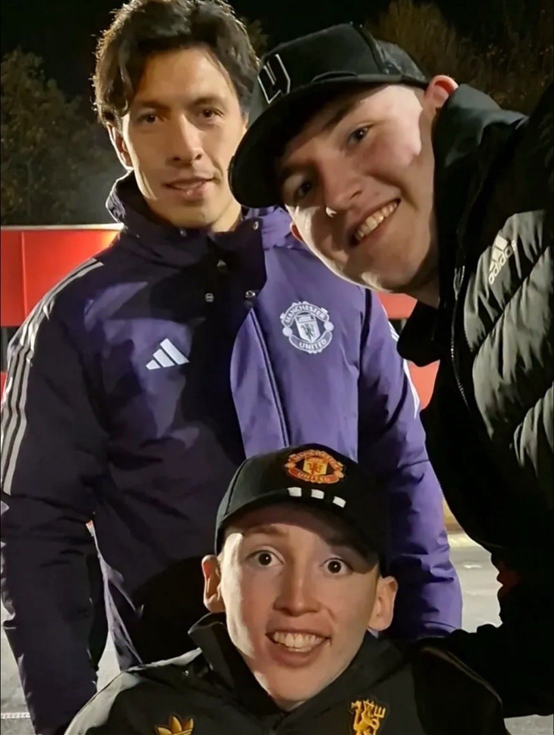 利马晒出了和国家队按摩师一起的照片🇦🇷图片左下穿着曼联外套的大叔。