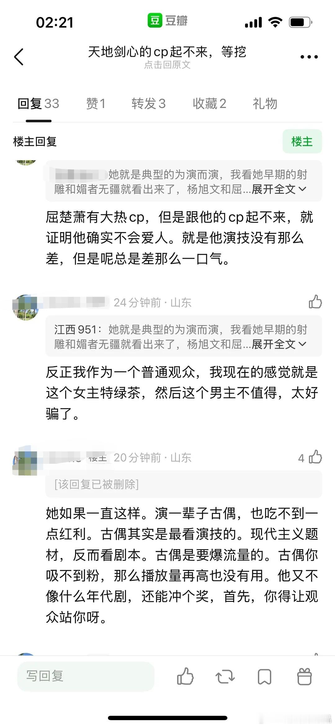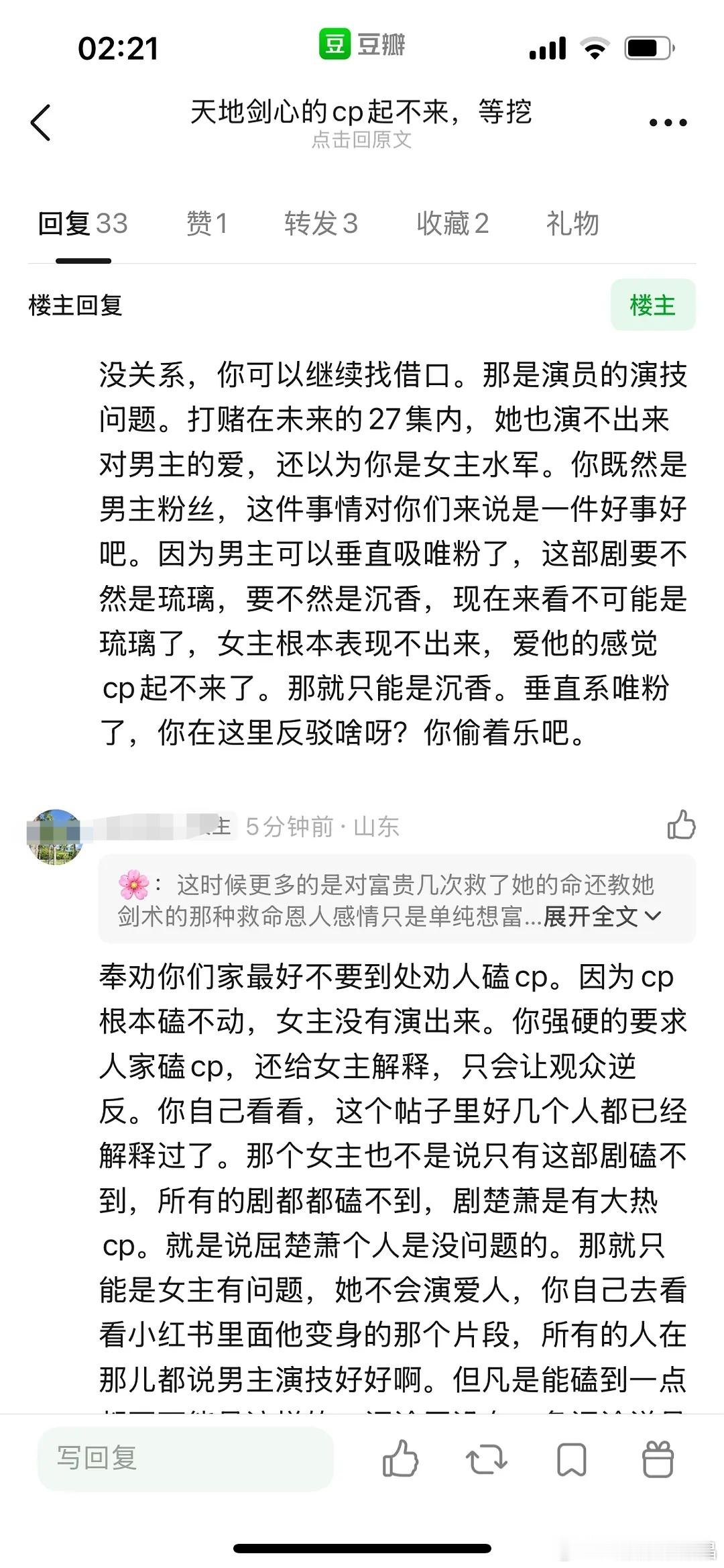 剧才播两天就在豆瓣开贴甩锅女主李一桐,cp又不是只靠一方努力,需要双方努力呢,甩锅的模板好熟悉[挖鼻][doge] ​​​