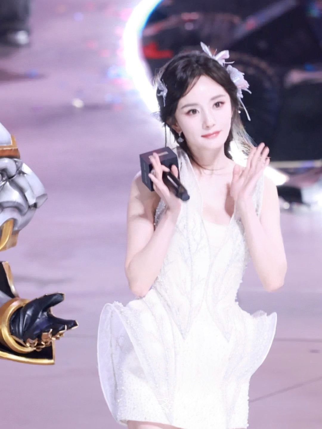 彩带的色彩斑斓与她的美丽相得益彰,她比出的爱心仿佛带着满满的爱意,透过屏幕都能感受到那份温暖,不愧是大家心中的甜蜜教主。杨幂彩带下比心