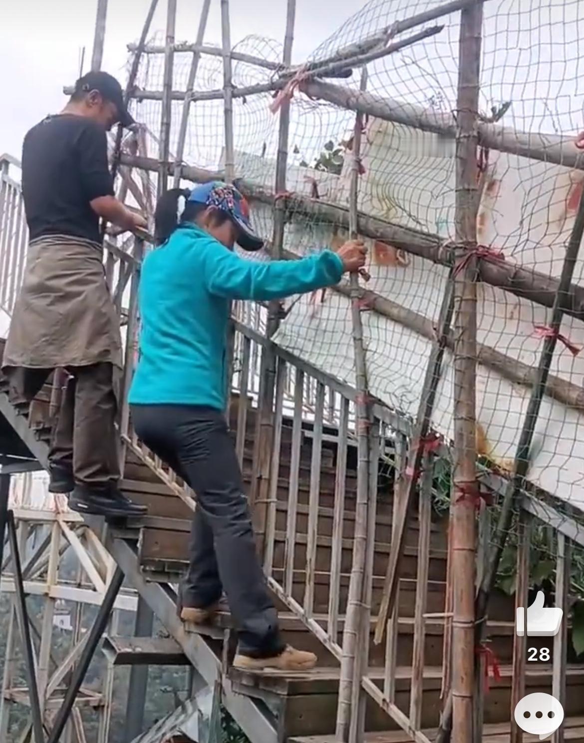一男一女逃票,翻栏杆去景区玻璃栈道玩,被工作人员发视频曝光。两人脸皮挺厚,就在工作人员的关照下直接翻进去了。这个景区工作人员很聪明,没有呵止他们,怕万一吓到摔下去要找景区麻烦。只是提醒他们要小心,注意安全,这不是正规入园的方式。他们摔了,景区赔不起。女孩出逃 玻璃吊桥旅游 玻璃栈道翻船