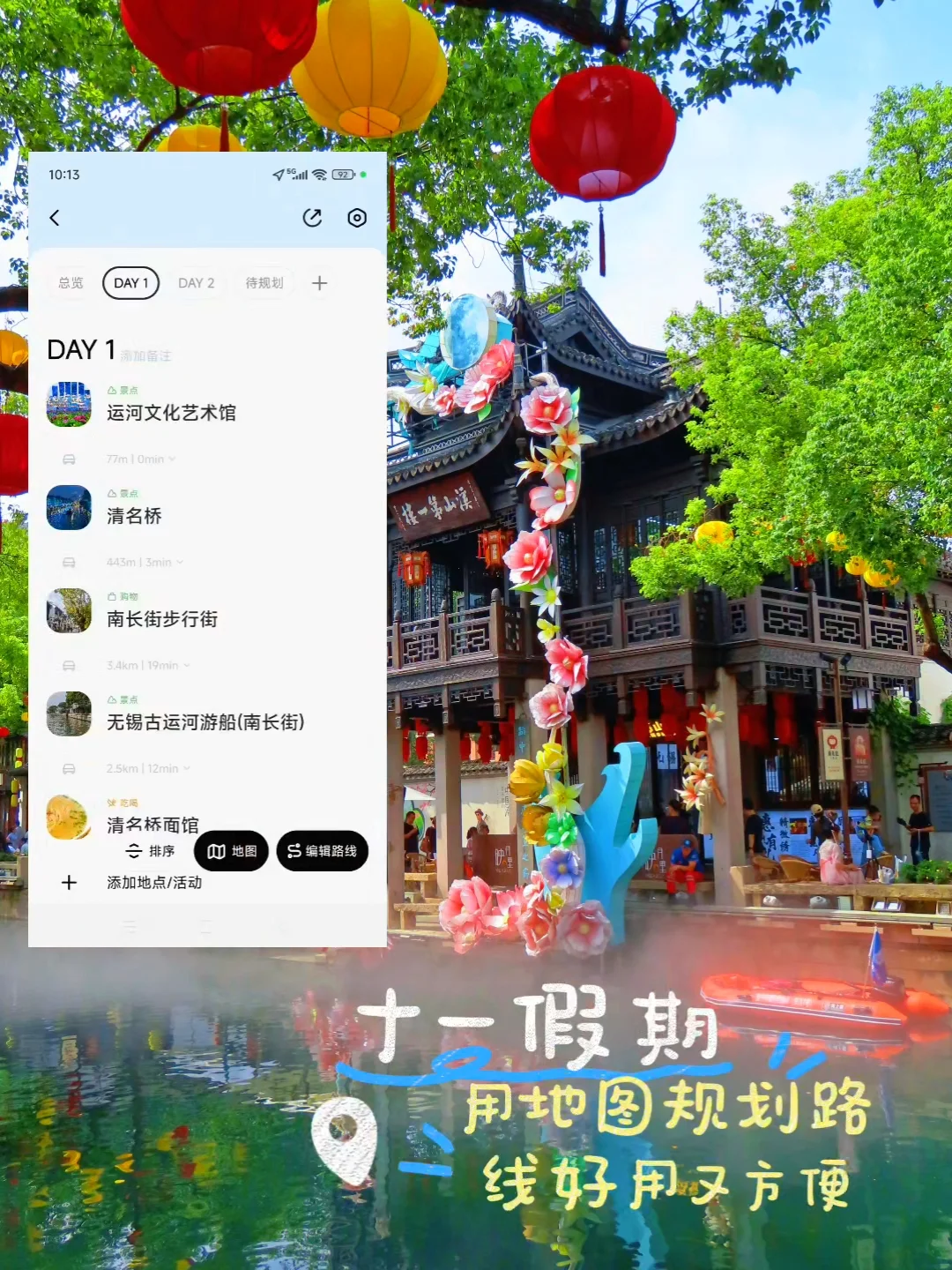 Day1:运河文化艺术馆➡️清名桥➡️南长街➡️夜游古运河