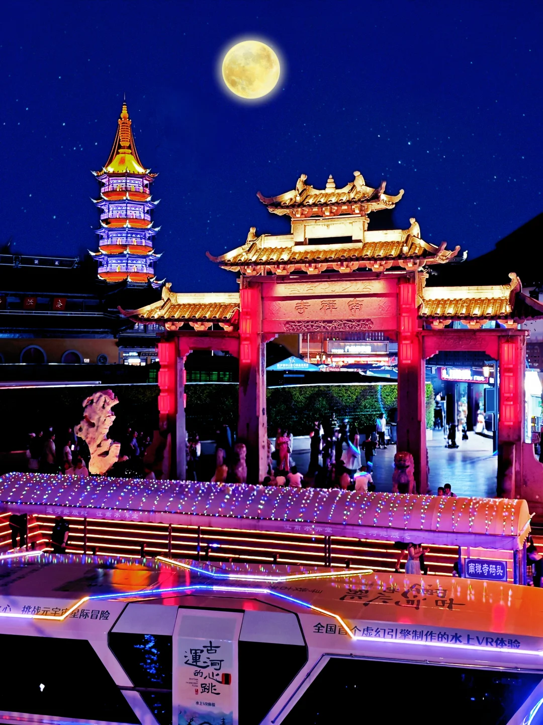 乘坐“今夜梁宵”夜游古运河,不仅能欣赏到精彩的国风真人表演,还可以看到震撼人心的高科技光影秀,一个半小时的航程堪称美轮美奂的奇幻之旅