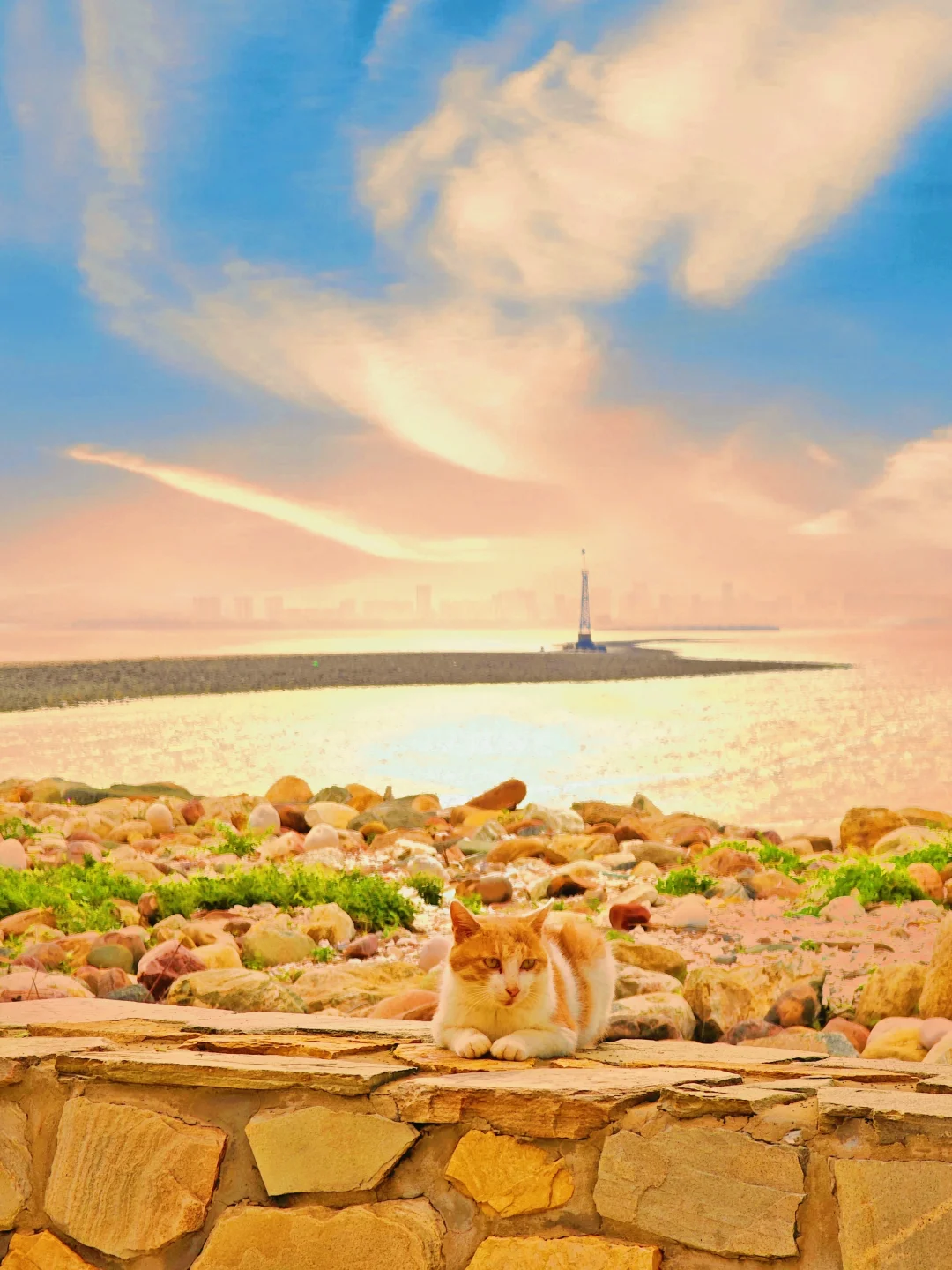 ✅晴天更出片,晚霞图片是在琴岛天籁码头拍的,除了这里,也可以在琴岛书苑看看书等晚霞,很chill