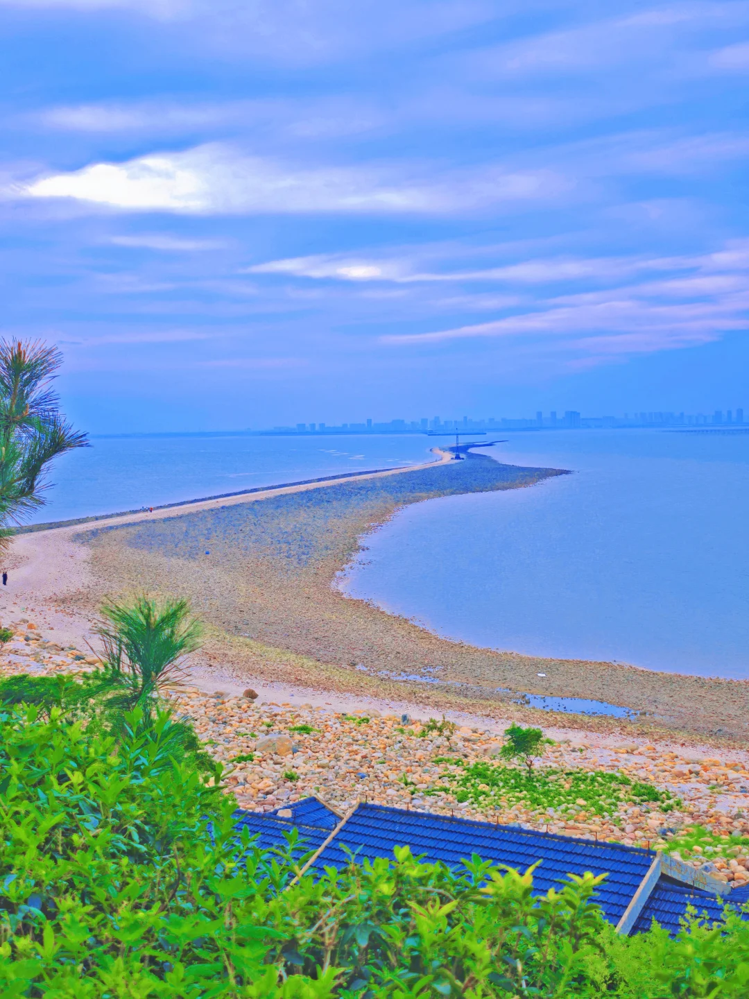岛上神奇的一条路,涨潮时淹没在海水里不见踪影,退潮时蜿蜒崎岖延伸到海中间,路两边礁石下藏着梭子蟹、海螺等各种海货,是赶海的最佳位置