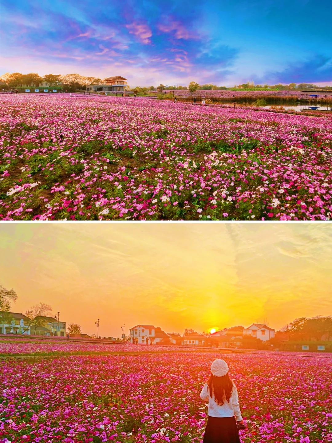 秋天的徐家院,拥有一片让人心醉的格桑花海!漫山遍野的格桑花如粉色地毯般铺开,尤其在夕阳时分,微风吹过,花浪轻摇,仿佛走进了莫奈的画里