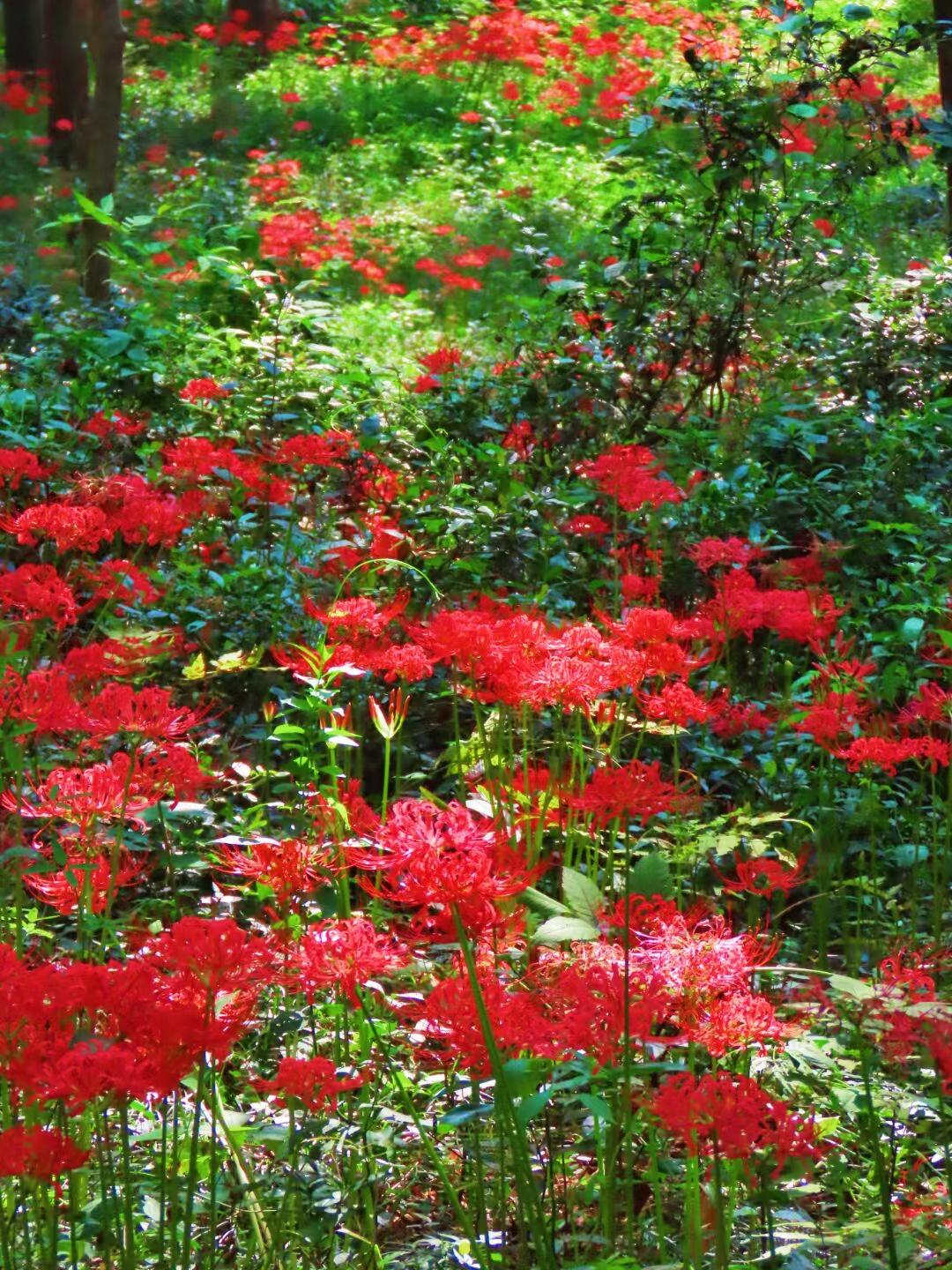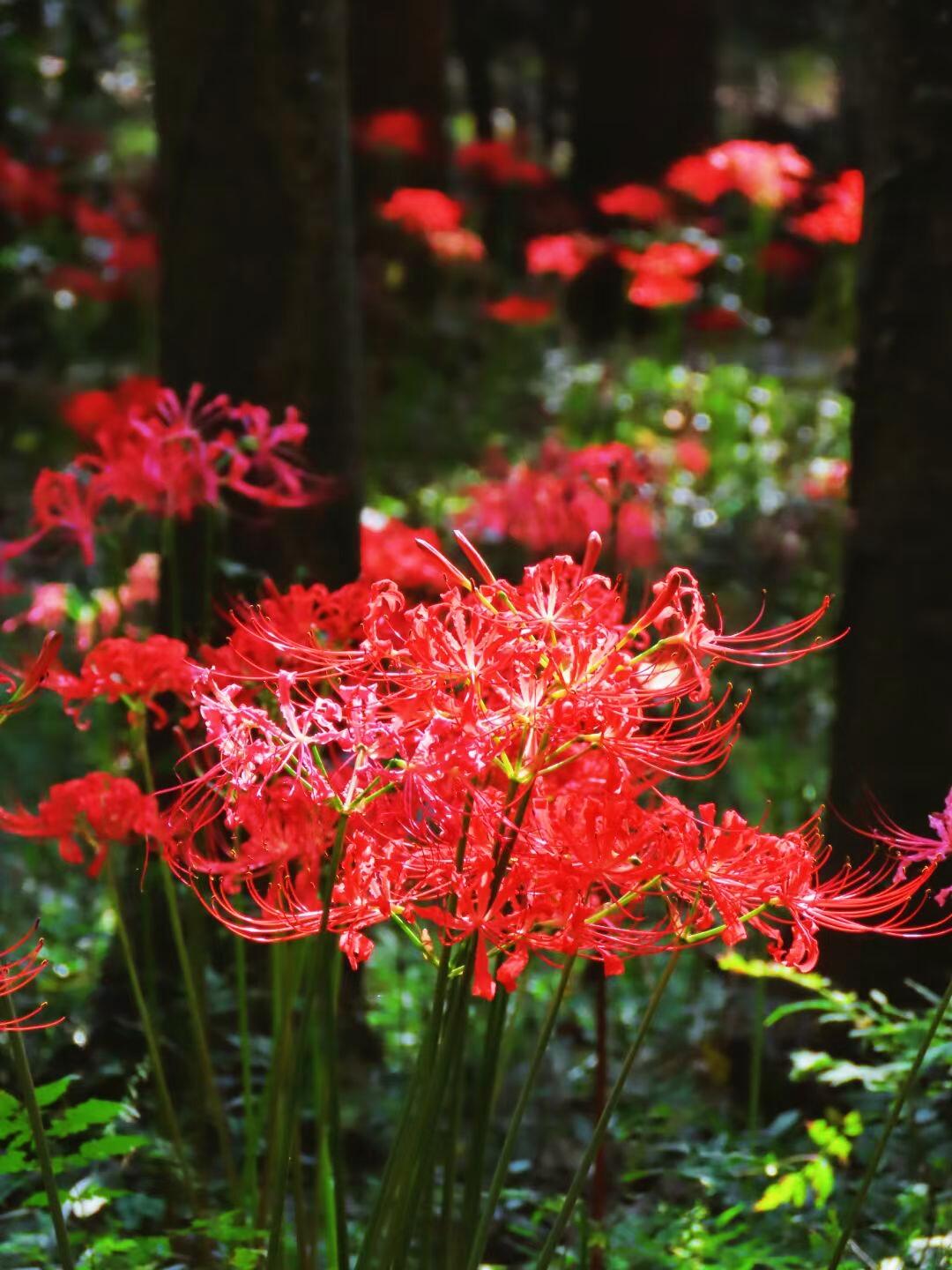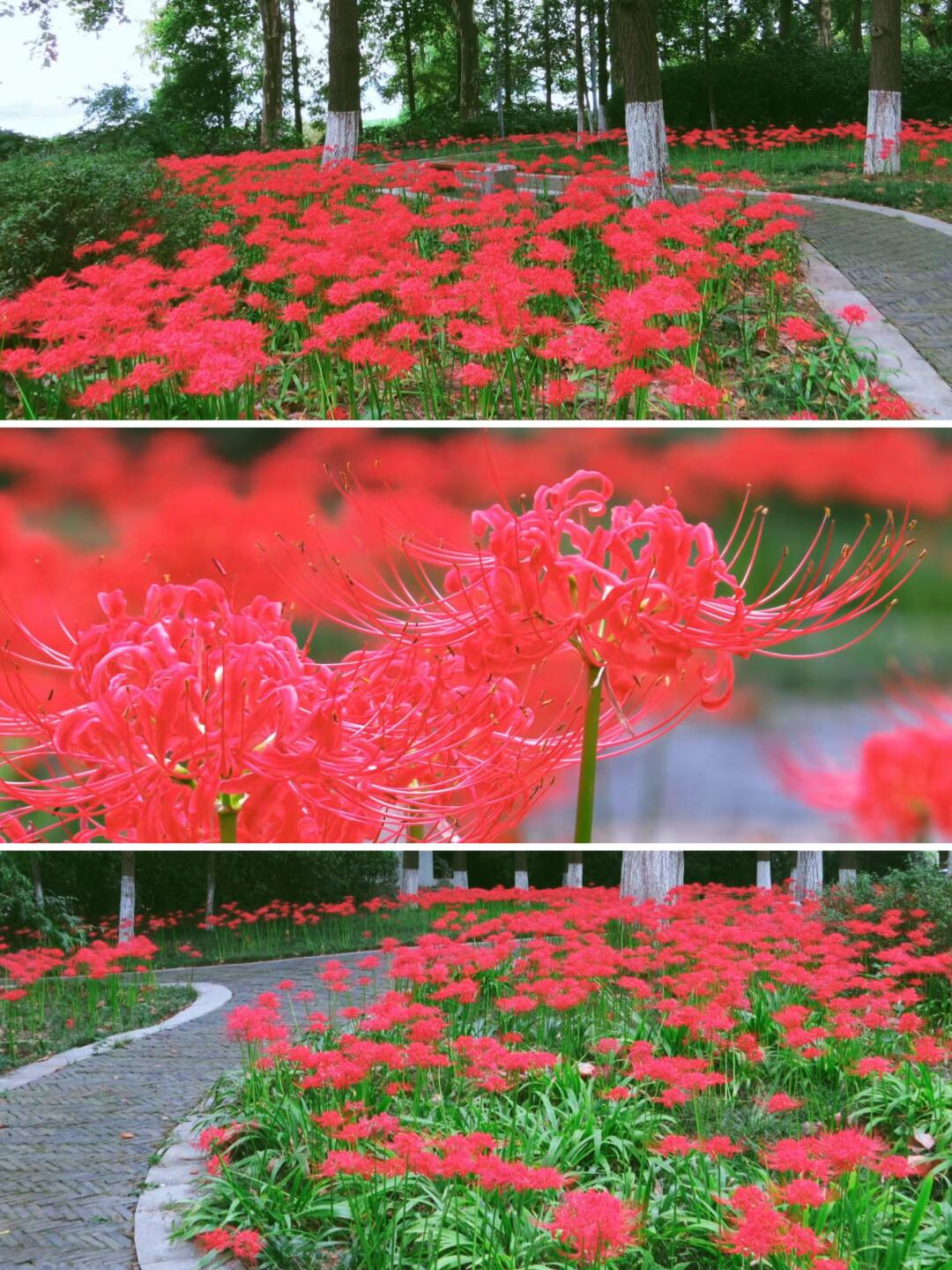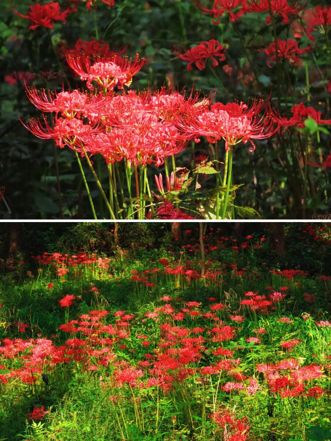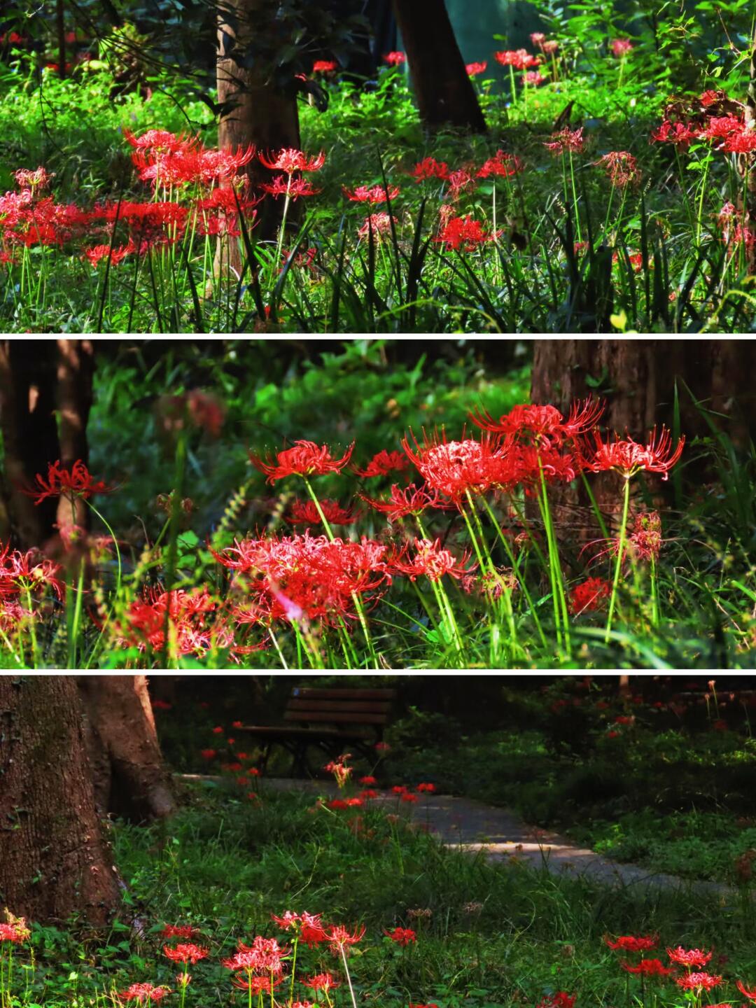 南京石蒜的花期一般是9月中上旬,红色彼岸花的花期稍微长一些