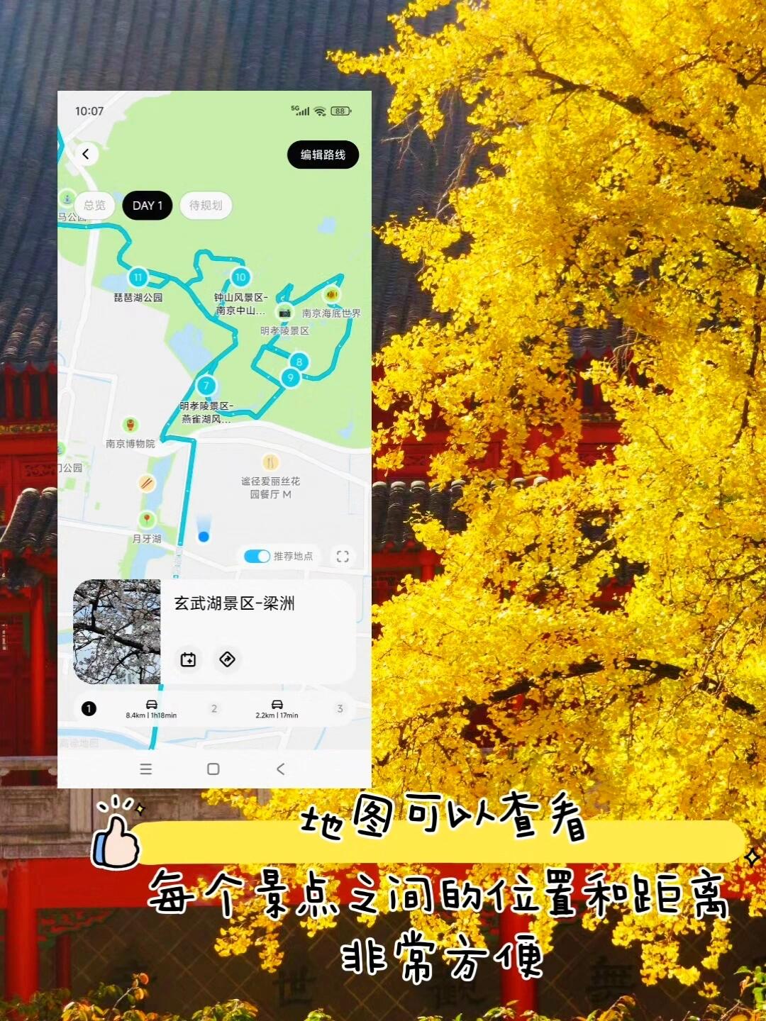 ⚠️出门旅行,我会用查看路线,首页有超多热门城市和景点的行程可以参考,还可以查看每个景点之间的距离和位置,好用又方便