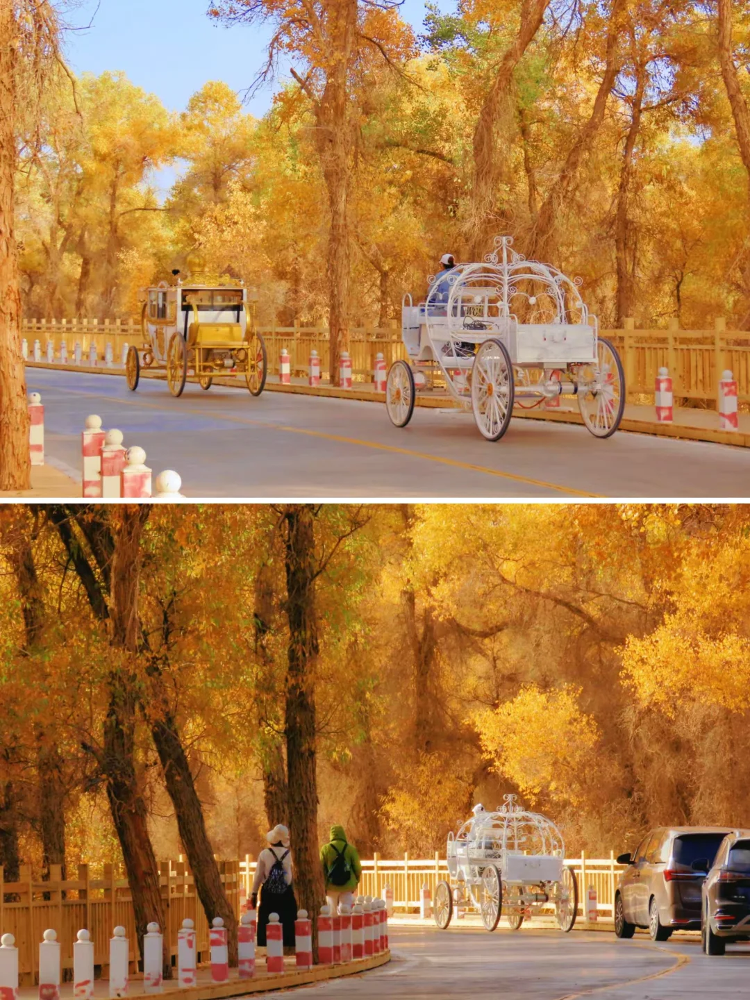 ✅胡杨林旅游旺季时游客很多,景交车非常拥挤,且等的时间很长,景区面积非常大,如果自己有车,建议买张车票开车进去游览,这样可以节省很多时间
