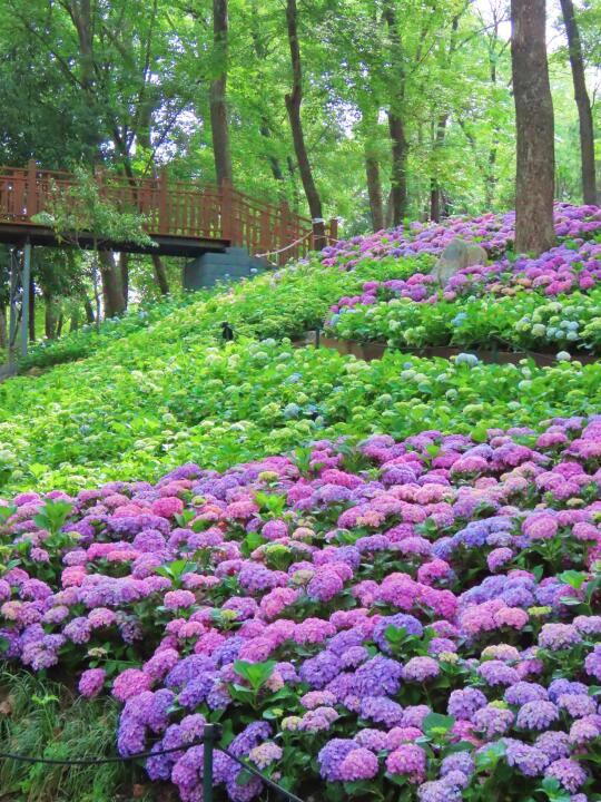 Hello大家,我是爱旅行爱拍照的- 翘首以盼的中山植物园绣球花山终于上线了 目前这里的绣球无尽夏已基本布置完成 开花状态是紫色绣球基本上全开了,蓝色和粉色的还没有全开,预计还要一周左右 想要拍照打卡的宝子可以过几天再来 - 📍南京中山植物园,绣球花山具体位置在北园孙中山先生雕像旁边 🎟门票:北园15r,公园年卡可用,春天赏花季周一不闭园 ⏰开放时间:8:30-17:00 🚇交通:公交20、315路中山植物园站 -