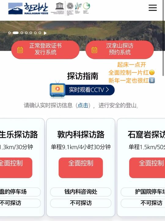 提前预约2.4爬汉拿山,人算不如天算,出发前天气预报2.4开始一直大雪(常规操作要封山)2.3隐隐约约有个窗口期,紧急操作抢到了仅剩的爬山名额 一起床看见一片红,窗缝都关得严严实实😄老实睡觉💤 汉拿山