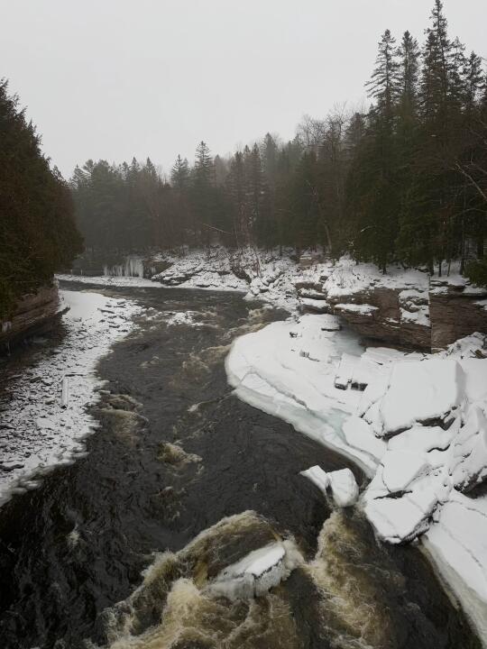 蒙特利尔自驾去魁北克城 两小时的路程开了四小时😂 路过了一趟Portneuf Natural Regional Park 看到完全不一样的风景 沿河一片冰川瀑布美得难以置信 几乎没有海拔上升,非常轻松的浅徒步