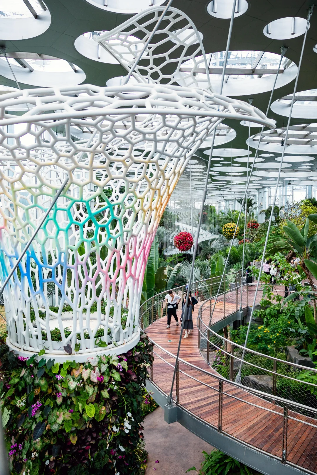 模拟热带花卉植物环境,以“空中的花”为主题。