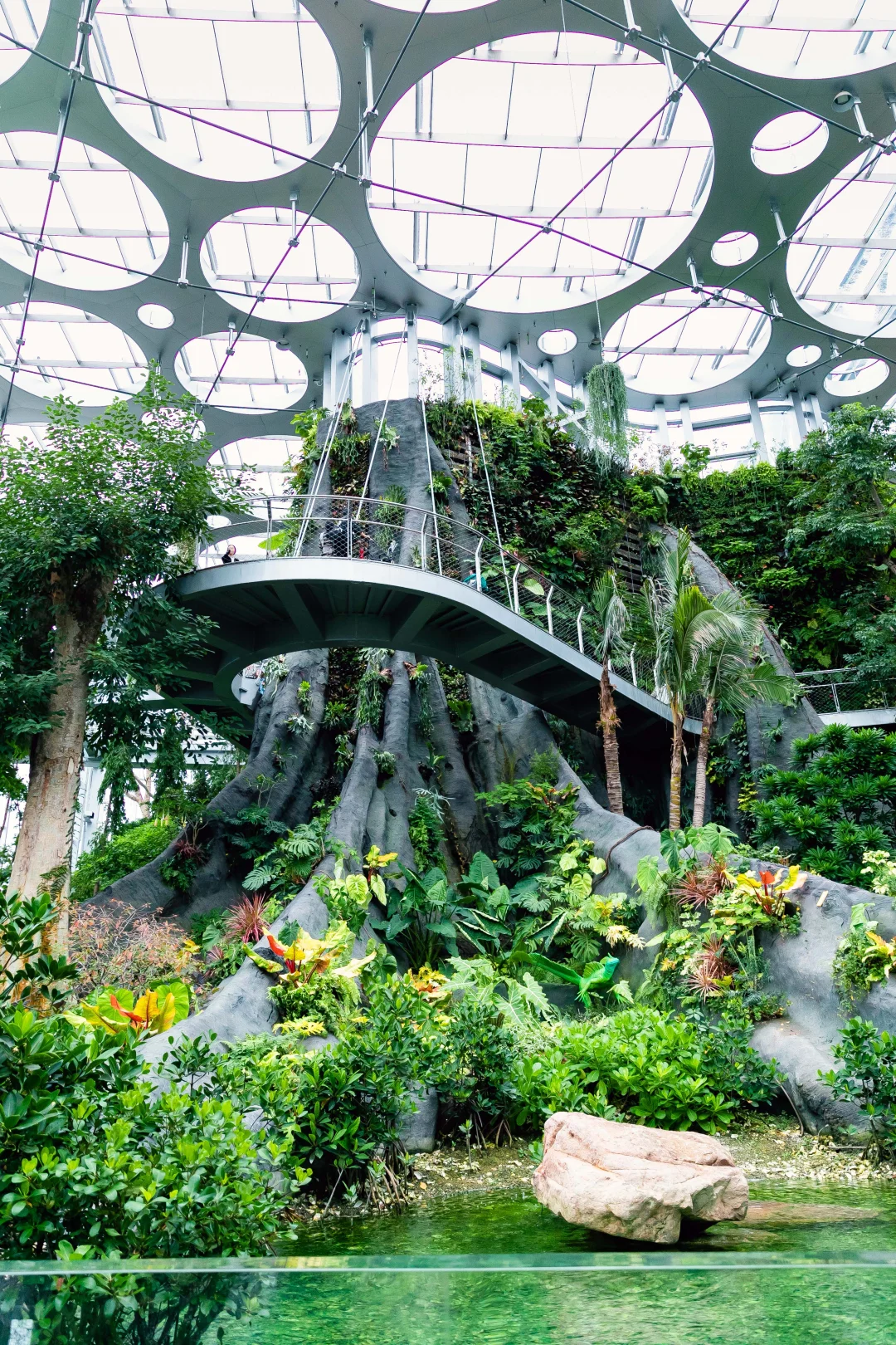 呈现热带雨林植物景观,以“会呼吸的根”为植物主题,有水上森林、水底森林、雾隐森林、鹿角森林四大景观空间。