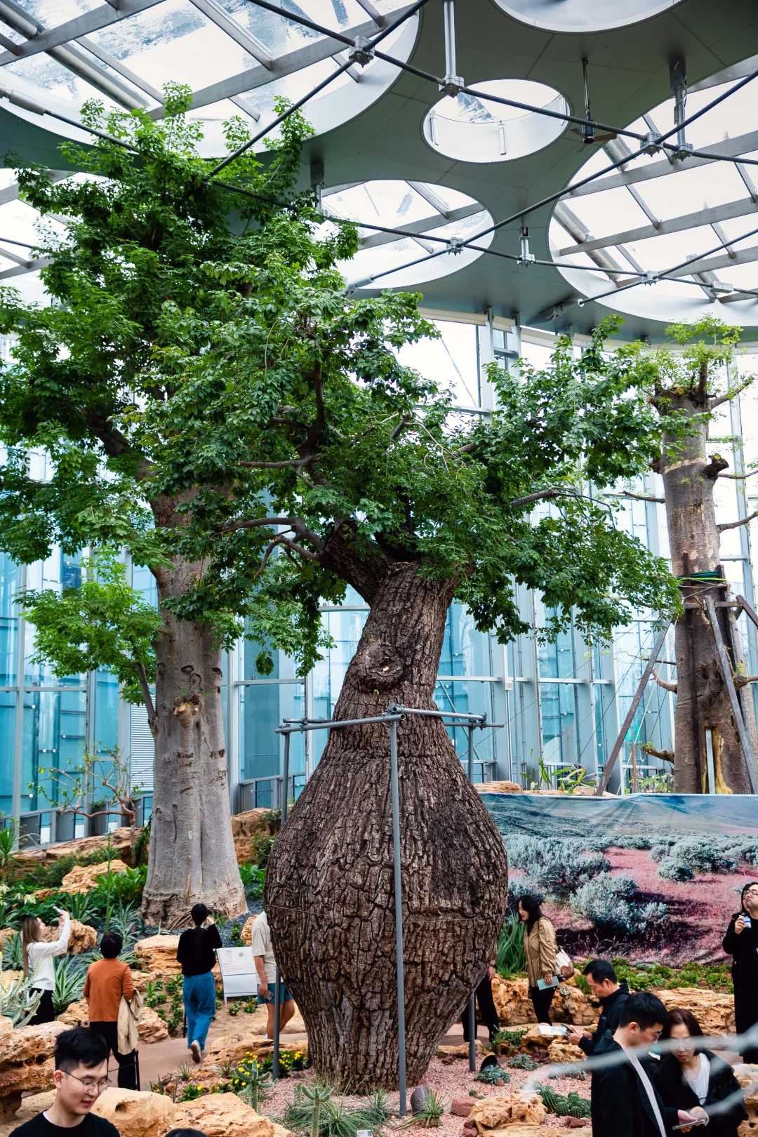 展示热带干旱植物,以山体为中心,打造出山、谷、洞、沙洲四大地貌空间,以“变异的叶”为植物主题。