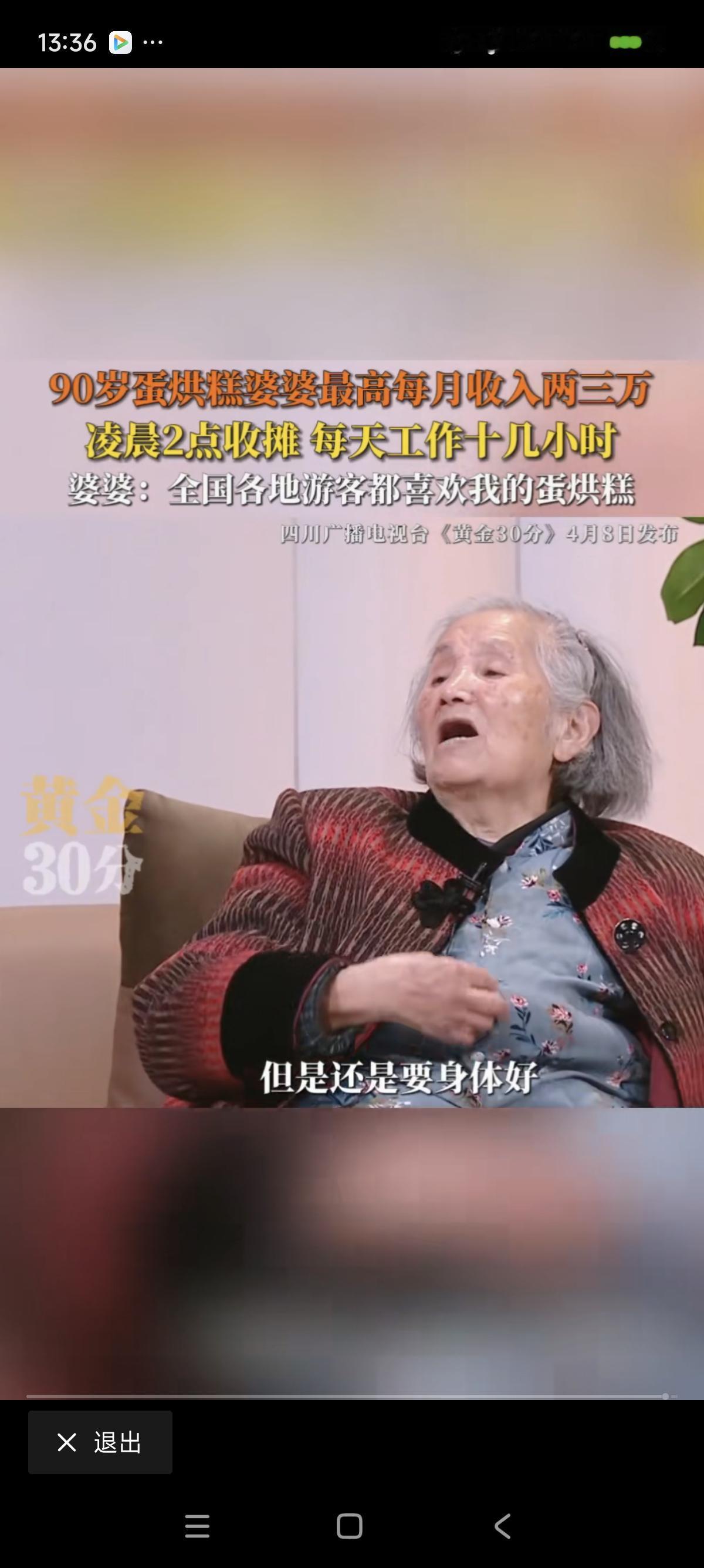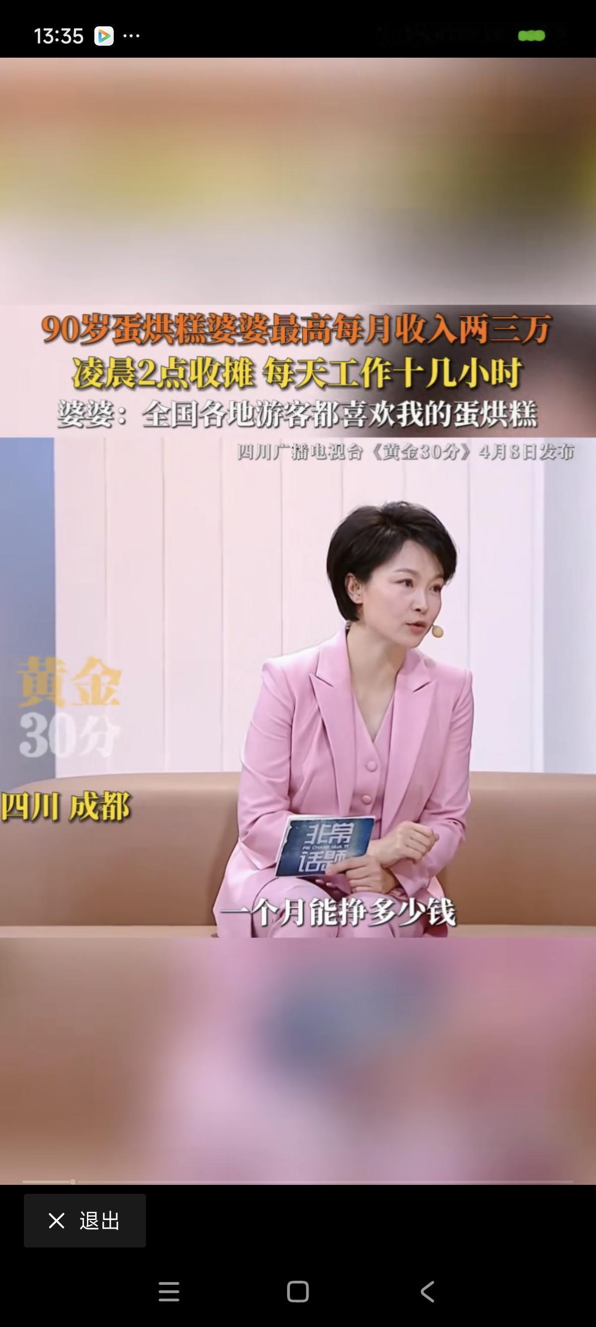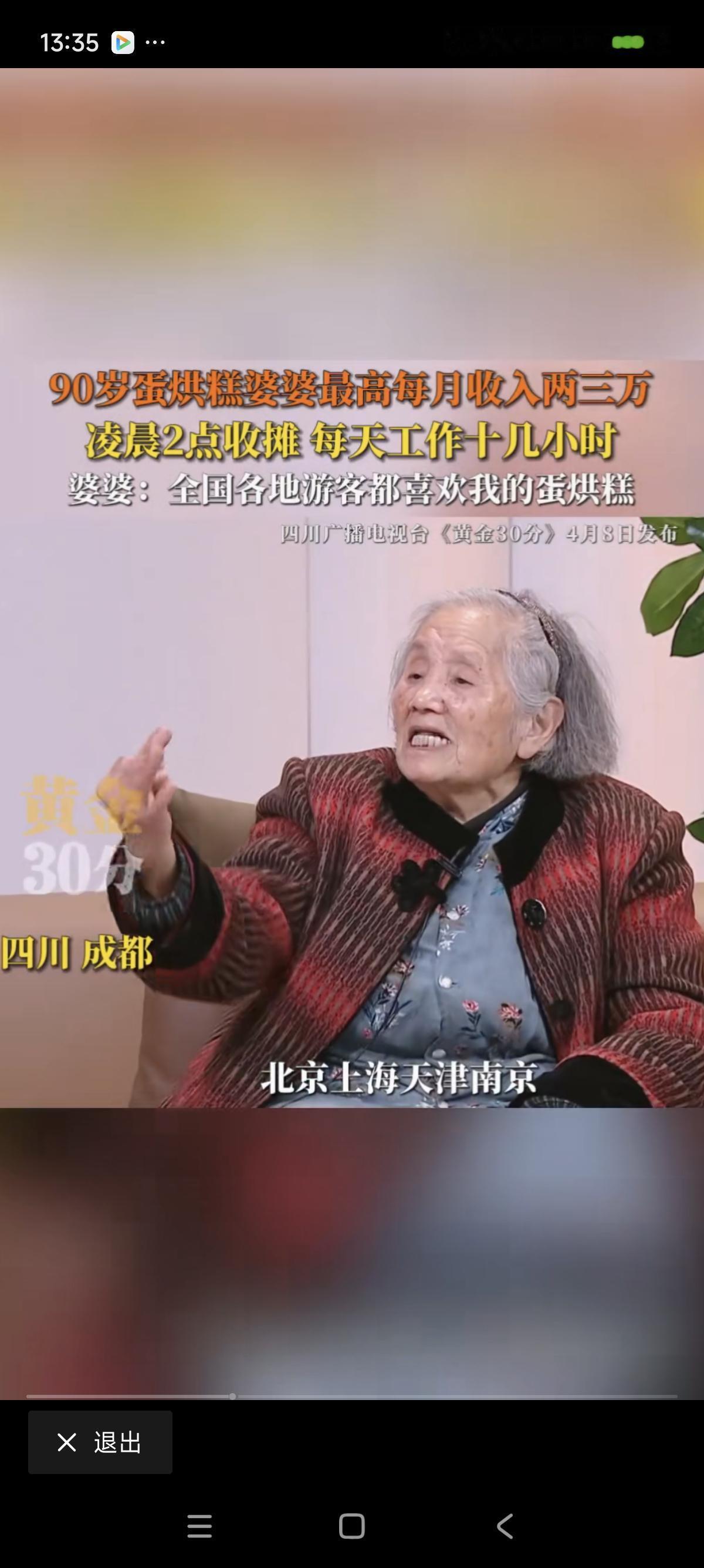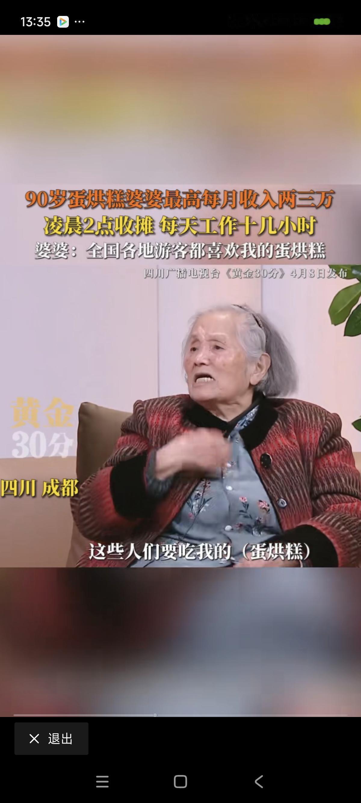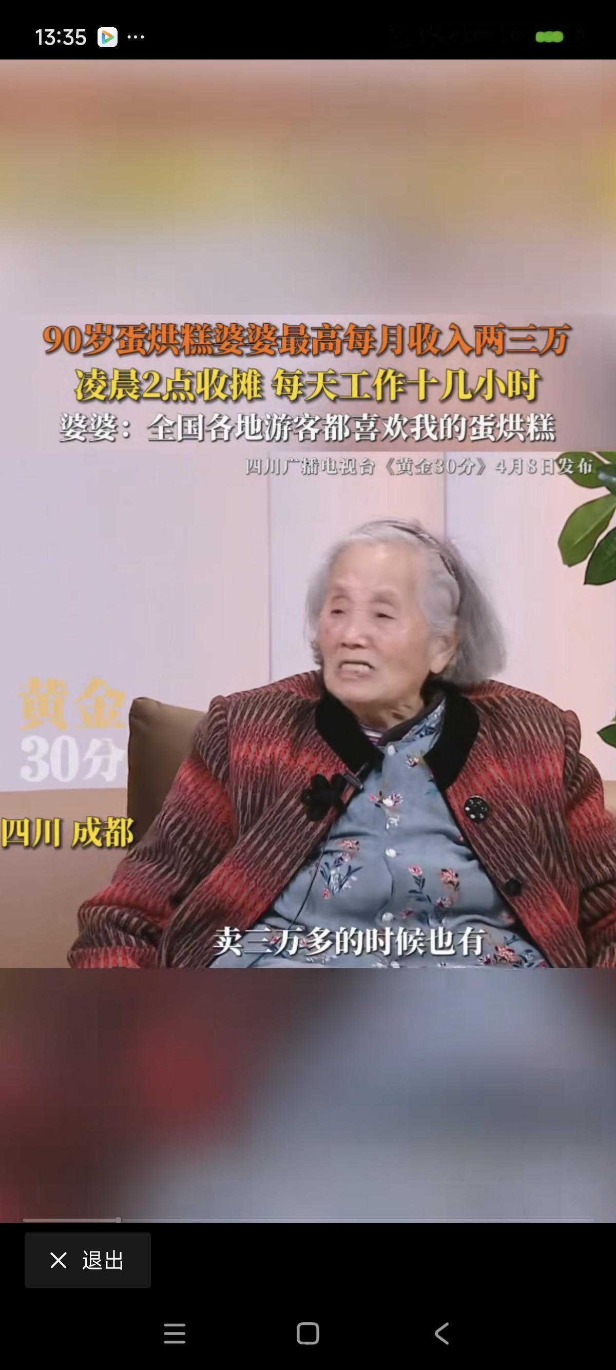 蛋烘糕老婆婆,又双叒叕上成都电视台了! 看来这几天的舆论,并没有把她打垮,反倒是更让成都电视台青睐了,又把他请回去做了一段深入的采访,他明确表示每个月都要赚三四万。 而且来她买蛋烘糕的基本上都是北上广深,还有台湾,香港,澳门,马来西亚,新加坡的。这些人才是能吃得懂好东西的人! 并且表示他非常能吃苦,早上11点摆摊,一直摆到凌晨2点半。那么我就有一个疑问了,她这么大年龄了,为啥不让子女摆摊?她去享清福,还要她去操劳一家人的生活? 电视台这次请她去,主要是要宣扬什么?