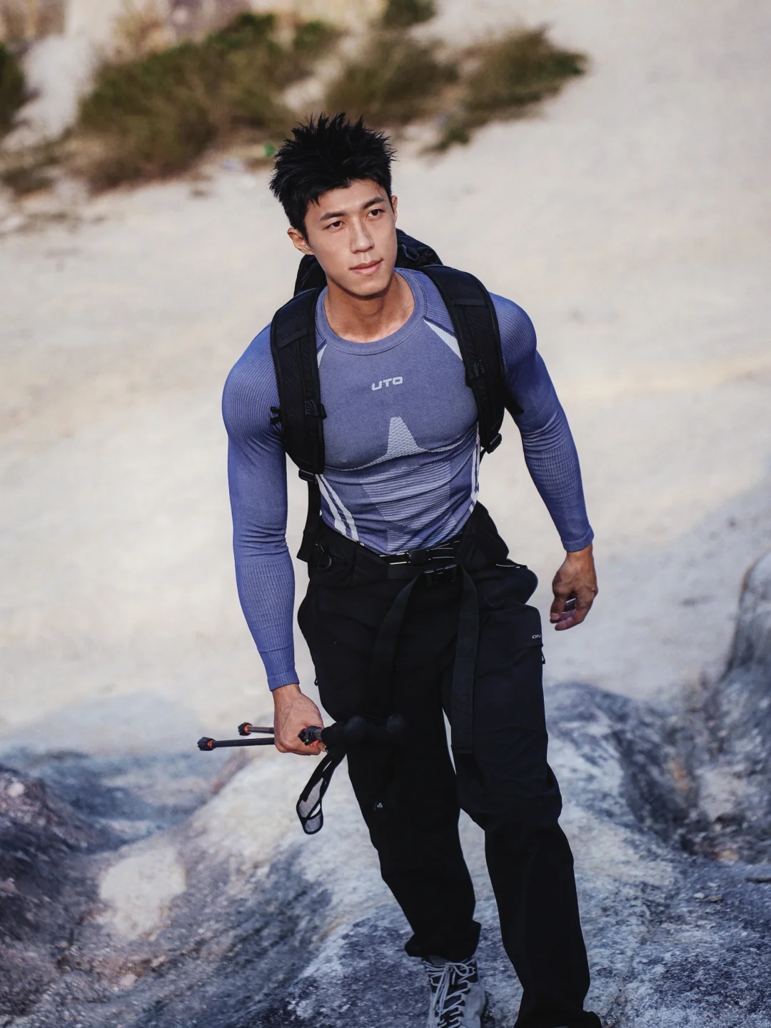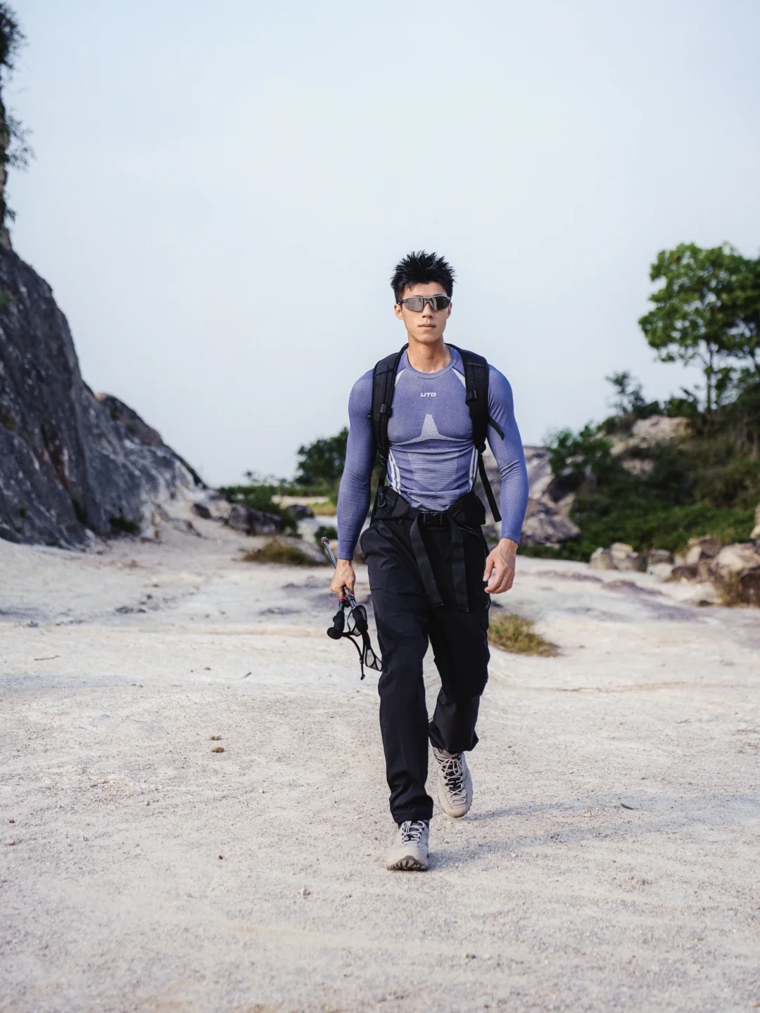 上山爬碎石坡那段特别费力 出汗量很大