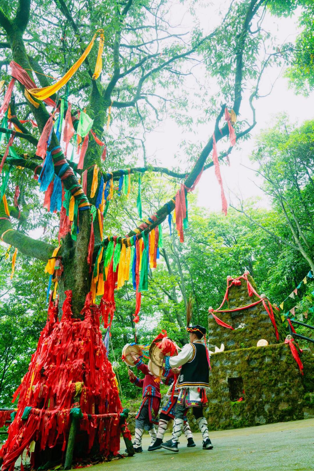 在神树林还能看到羌人祭祀祈福呢,神树林到天王殿的路上一路上就都能听到羌调歌乐的演奏💞,还有羌绣非遗展演也挺不错的呀,个人感觉很有意义
