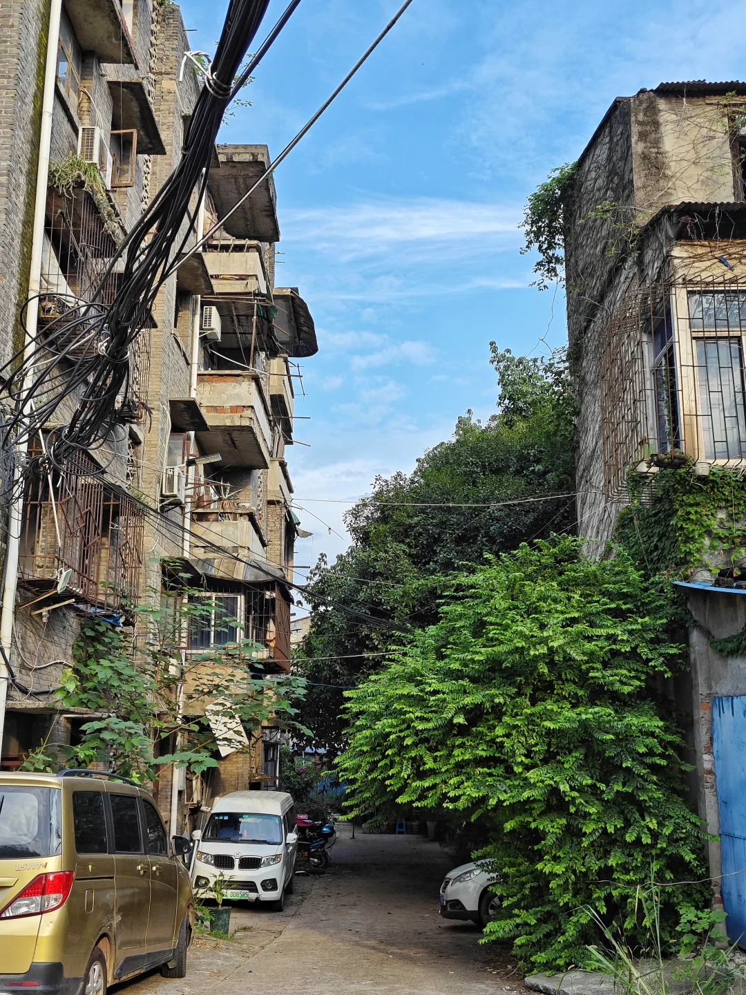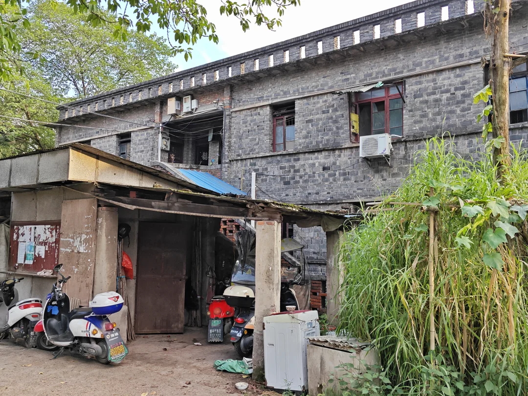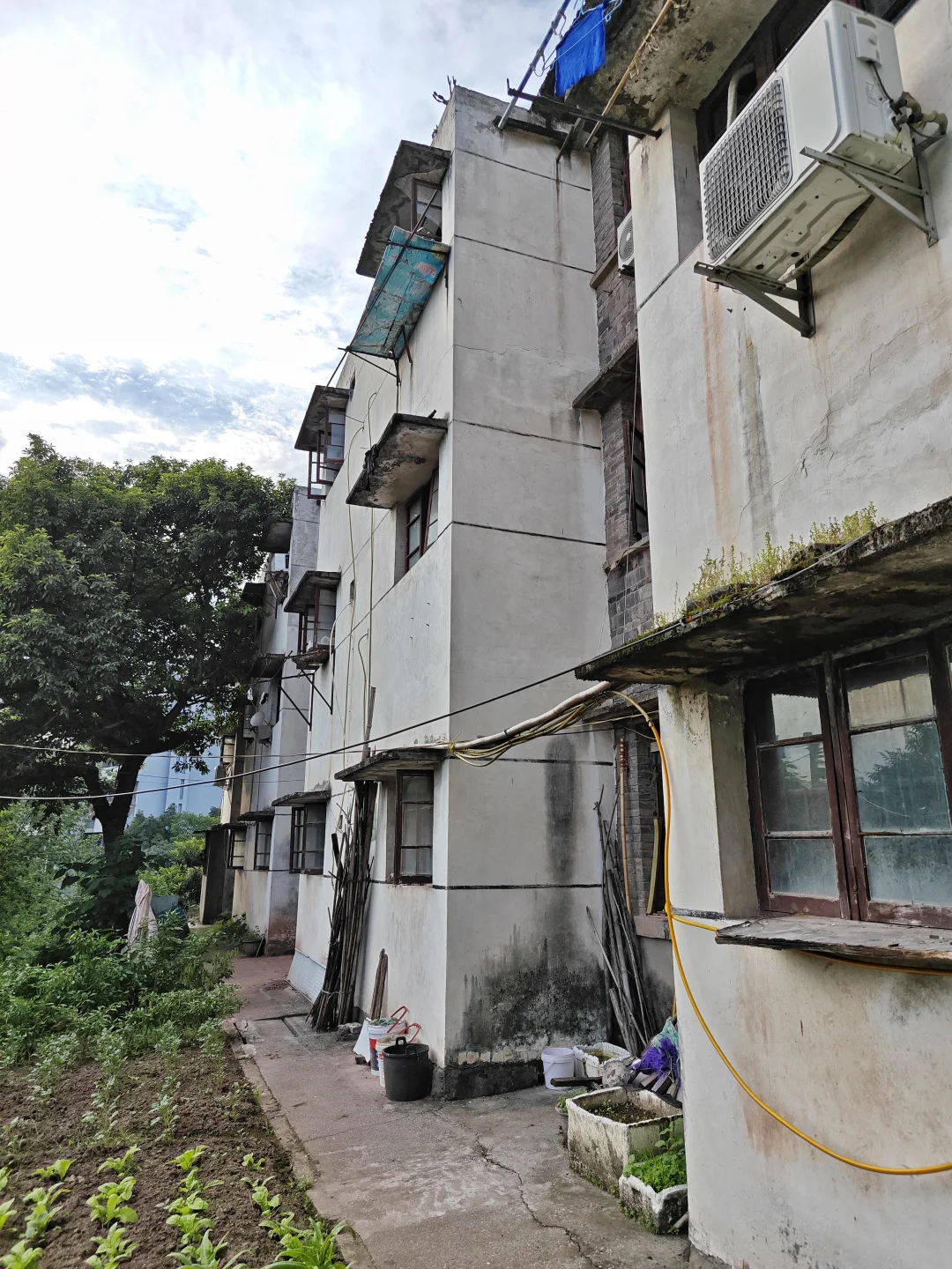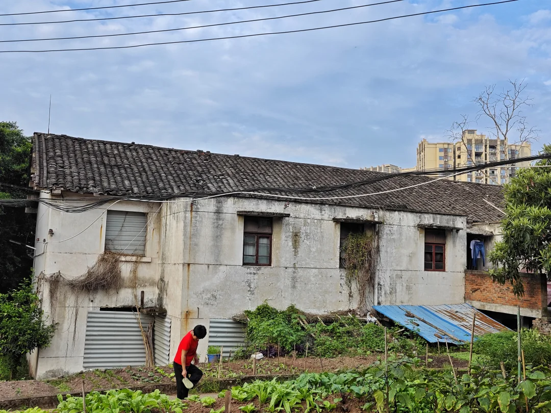 话说回来,来鹿寺江北农场的老家属区内,除了1960-1980年代的老式家属楼,还有不少看起来像村民自建房的砖瓦房。我当时还很奇怪,为啥会这样混杂,一问才知道这些自建房还真是自己修建的,不过不是村民自建房,而是农场职工修的。在1990年代中期,当时江北农场效益已经不好了,没钱修这么多职工集资房,所以让职工自己出钱修建,有产权。这就是现在都能看到的,在江北农场公交站附近山坡上那几栋造型粗糙的自建房,红砖房已经没住人了,因为房主在旁边的新小区住,但这些红砖房的产权还在,也没拆迁,所以还在这里,他们就平时在山坡上养鸡鸭种菜,不亦乐乎。而来鹿寺15号那一片老家属楼里,这种自建房有的还住着人,几乎家家户户都养狗,外人进入这片区域还真的要小心。