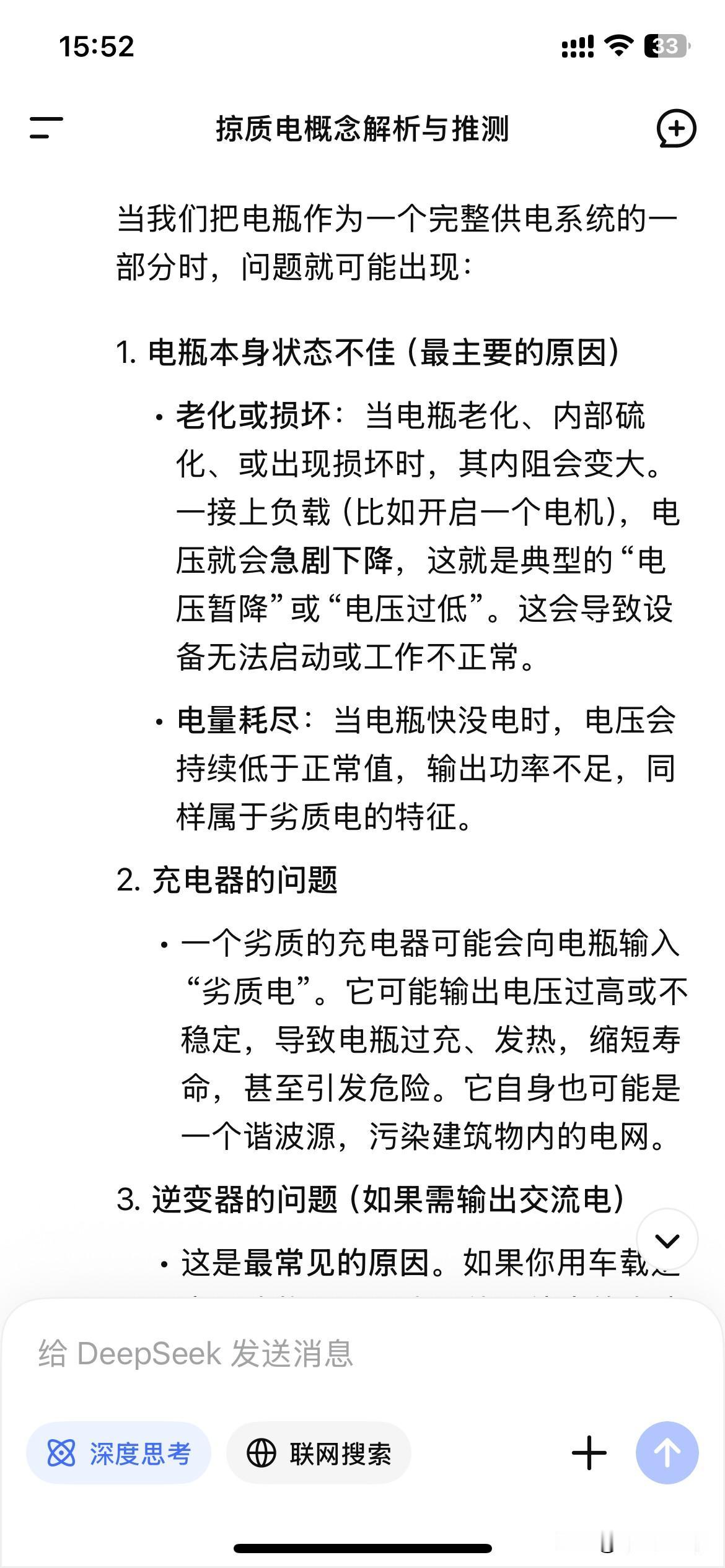 最近关于某车企提出的,电车自燃是冲了劣质电的原因。不是电力行业出身的,百思不得其解,今天忍不住好奇去Ai深度搜索学习了一下。自燃新能源汽车 对于劣质电导致电车自燃你怎么看?
