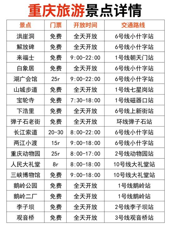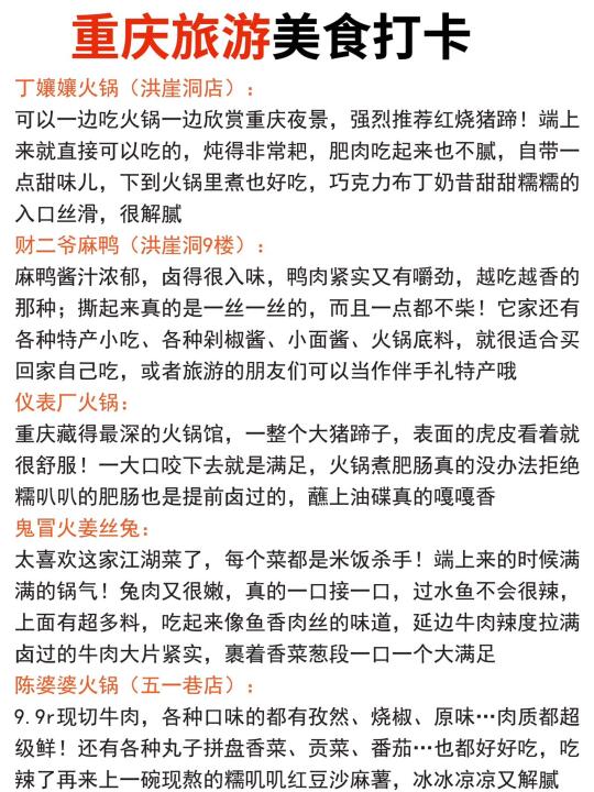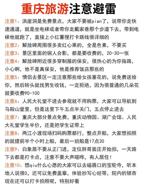 刚从重庆回来,因为攻略做的比较足(尤其是景点的攻略),所以玩的很开心‼结合我的游玩经验,给大家总结了这次去重庆游玩心得📝大数据快推给👉跨年要去重庆的姐妹!能帮一个是一个呐! .