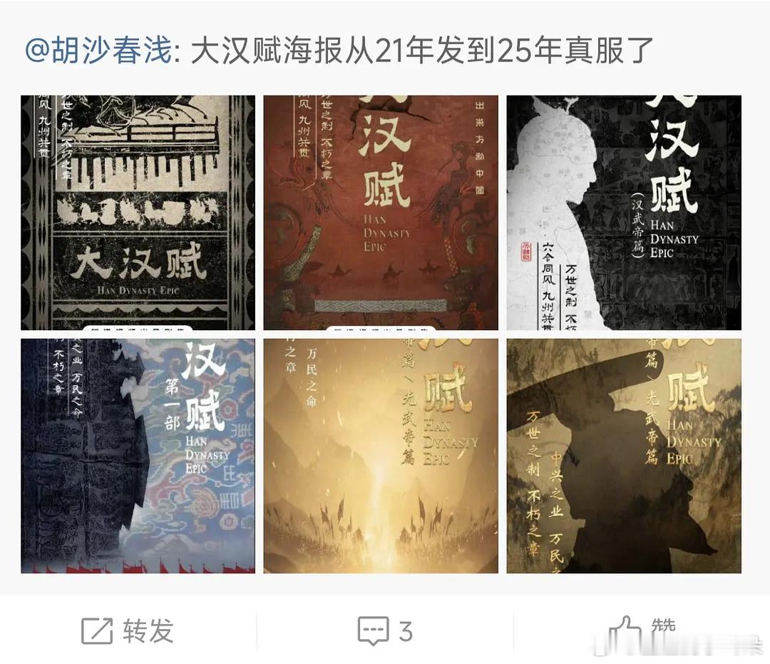 大汉赋已经连续发了五年的海报了,就是开不起来,这种历史古装大剧投资不会小,不知道
