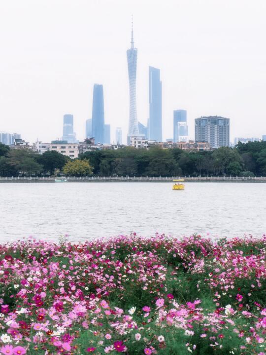 大门进去右手边走1公里出头,就能看见湖边大片的格桑花海🌸,还可以和远处的广州塔同框。湖边栈道还提供免费的望远镜,也是绝佳的观鸟地!🐦