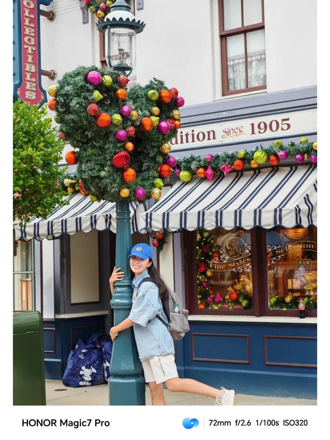 图❶ 在小镇大街上面向圣诞树,和火车站拍同框
