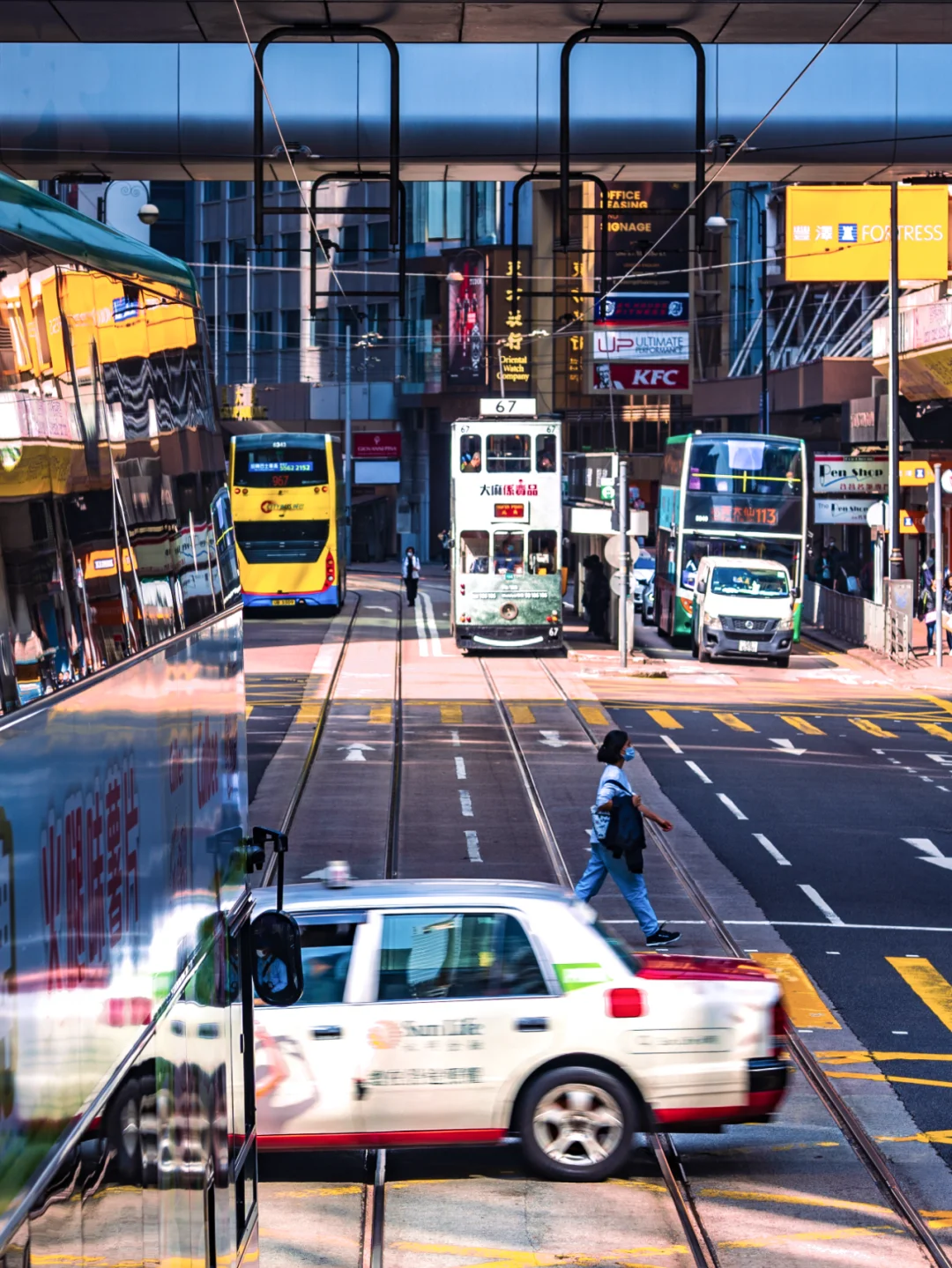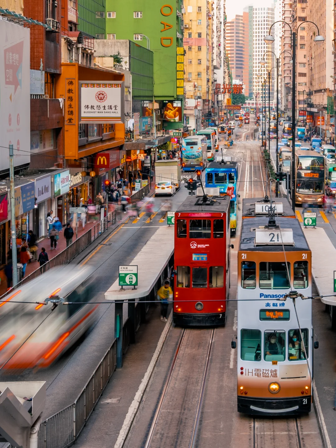 ❽在中银大厦天桥看叮叮车驶过S弯道,被阳光洒下来的那一瞬间治愈