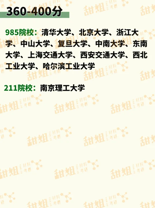 材料考研,不同分数可以上岸的院校汇总