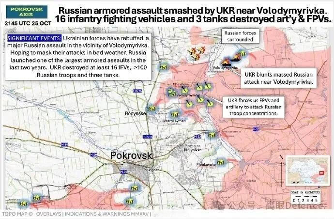 烽火问鼎计划 乌军总参谋部宣布,自8月21日发起反击以来,波克罗夫斯克方向的情况已趋于稳定,截至10月26日,乌军已在波克罗夫斯克方向解放了185.6平方千米领土,并清理了243.8平方千米领土,夺回了9个定居点,另外9个定居点已清理完毕,在过去10天里,总计消灭了1756名俄军、摧毁75台装备。