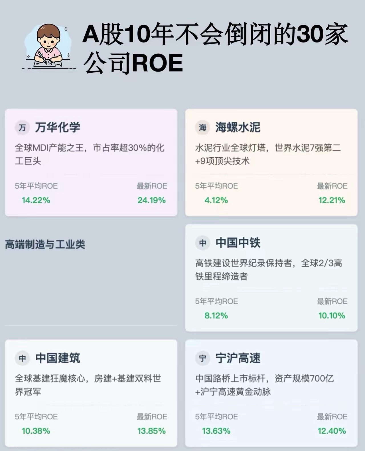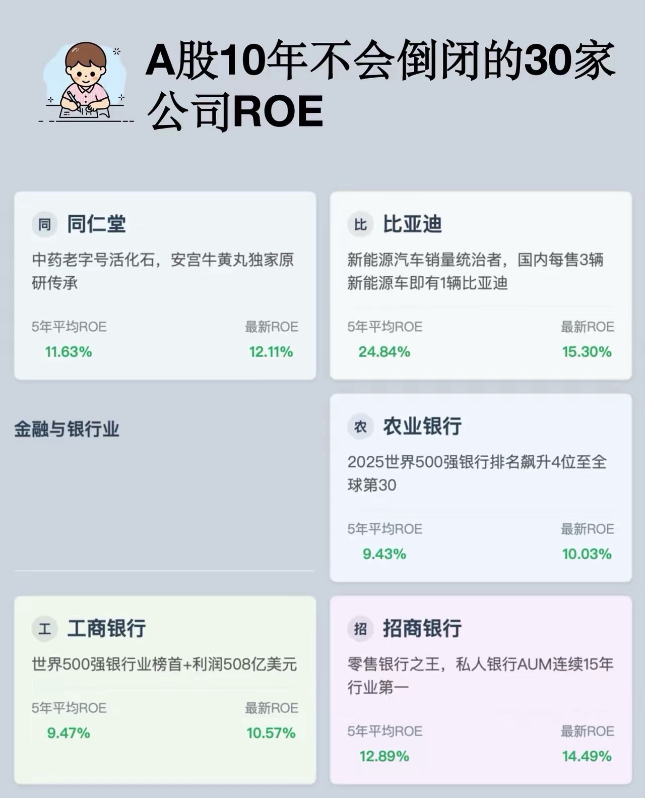A 股10 年不会倒闭的30 家公司 ROE 情况