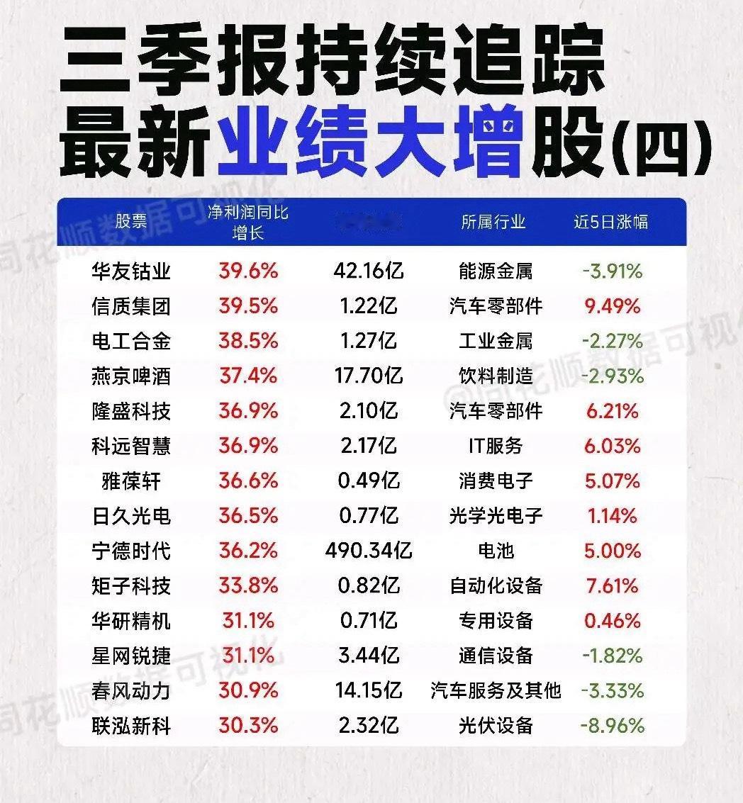 三季报持续追踪,最新业绩大增股盘点