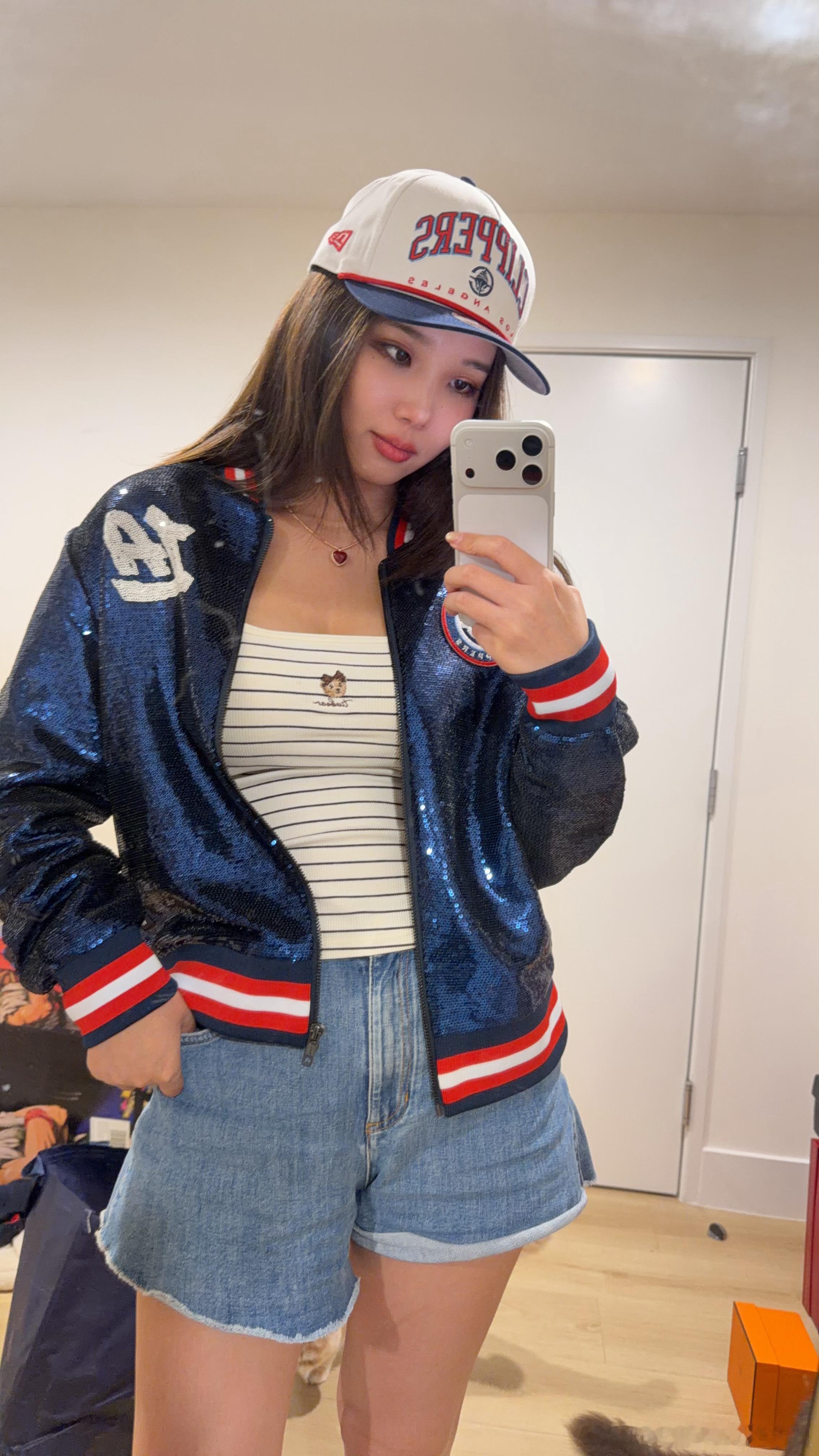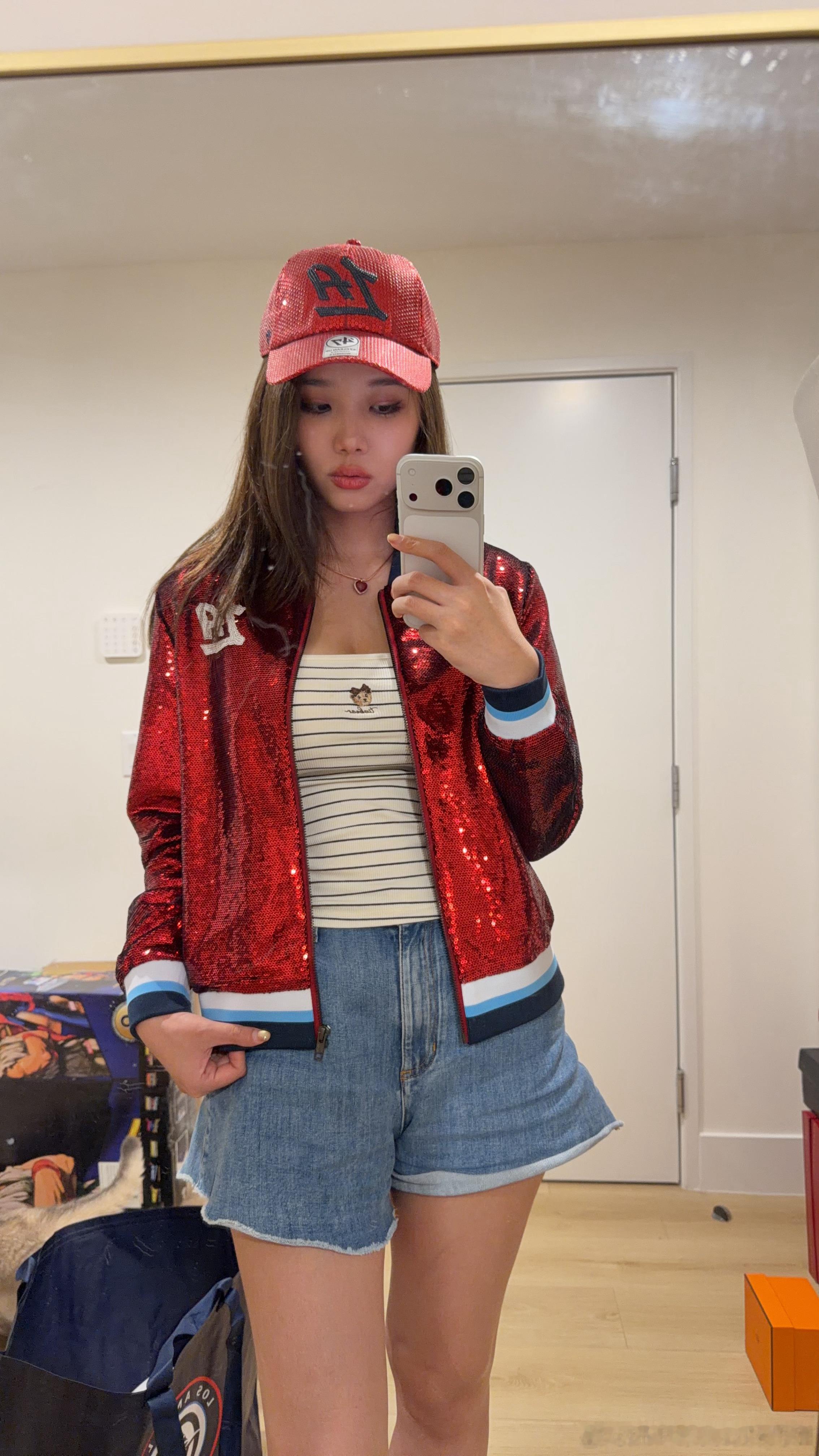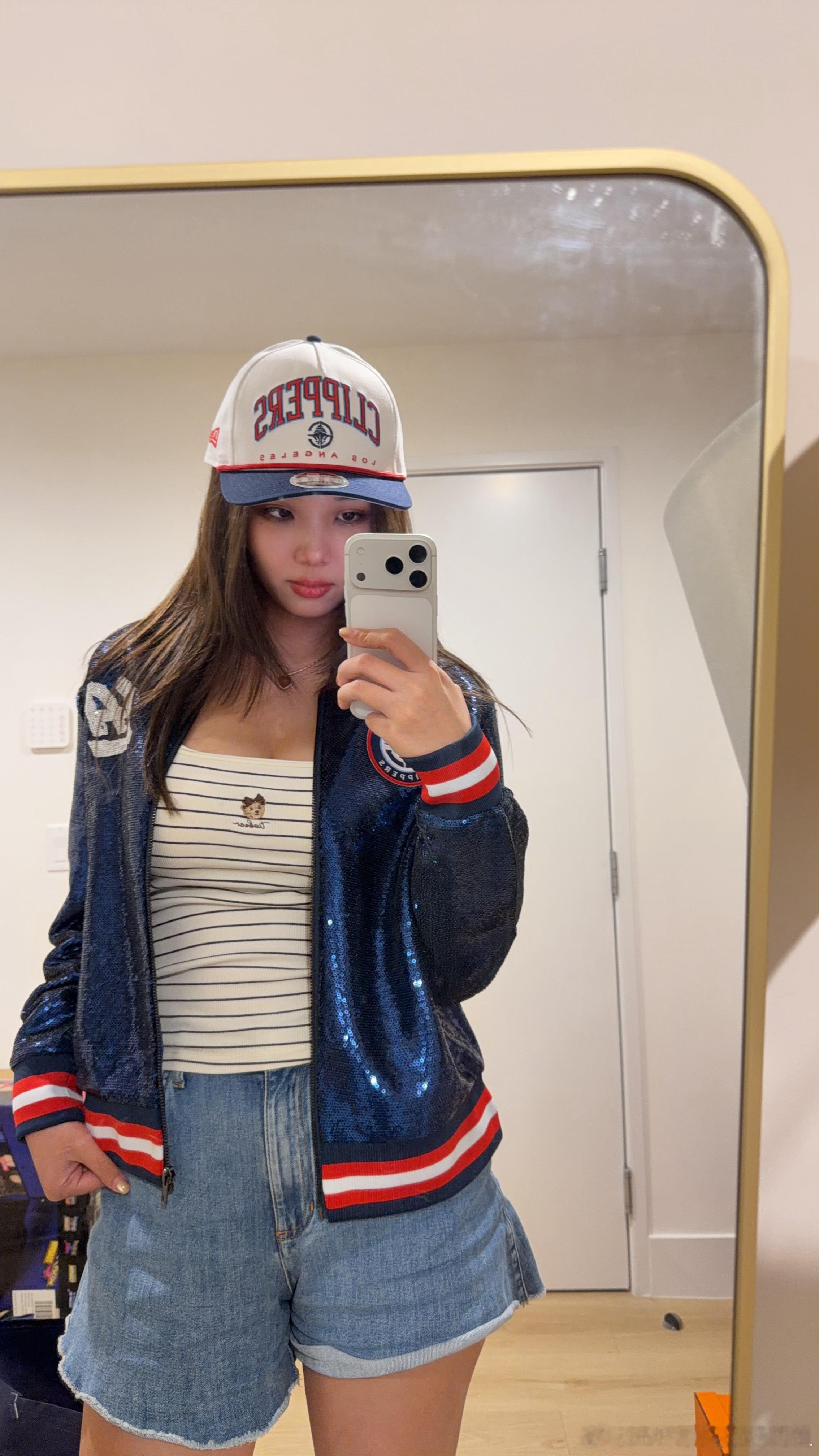 篮球nba快船 快船新赛季的一些单品,bling bling的棒球外套,红蓝两色,再配同色系帽子