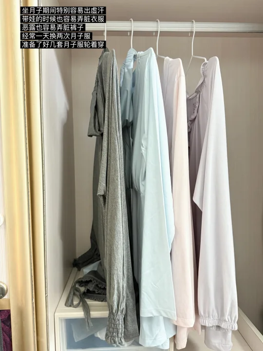 准备了4套月子服交换穿 出月子后不用扔就当睡衣穿