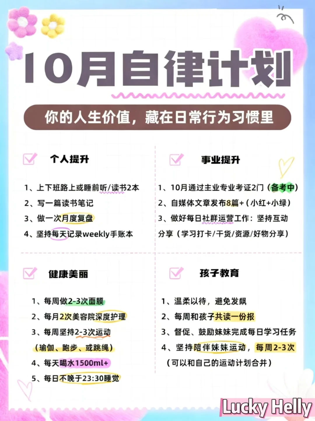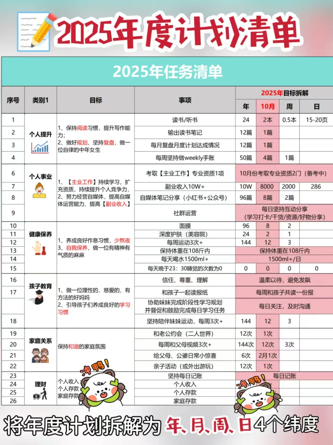 10月的任务清单,依然是围绕年度目标开展~(略有一些优化调整)