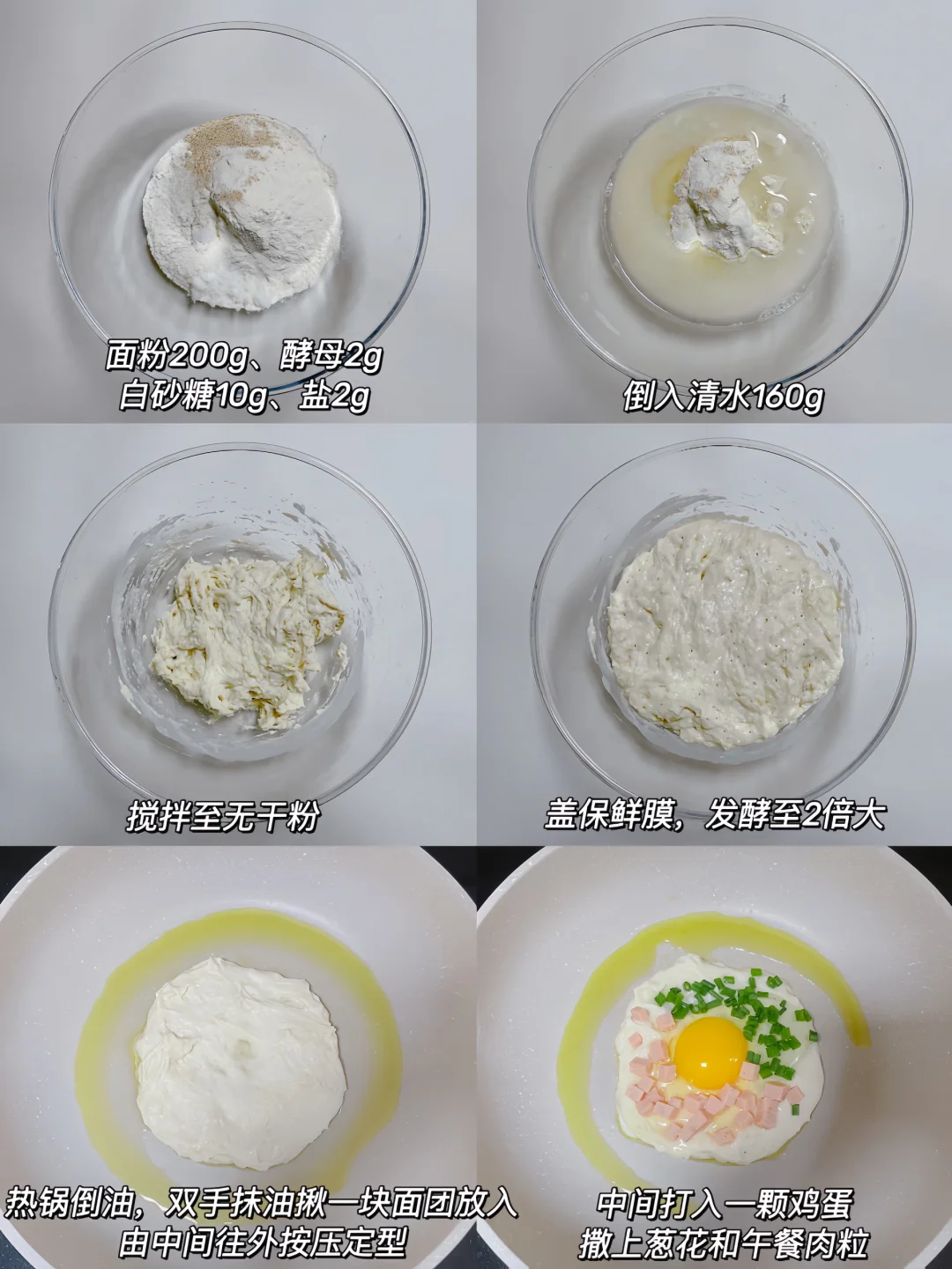 早餐不知道吃什么的,快来安排这个葱香鸡蛋发面饼,蓬松暄软超好吃[赞R]无需揉面,搅一搅就可以完成,面团还能提前一晚醒发,早上10分钟就能吃上香喷喷的饼啦[派对R] 👩🏻🍳 面粉200g、酵母2g、白砂糖10g、盐2g、清水160g、鸡蛋、葱花、午餐肉 🔎具体做法见图