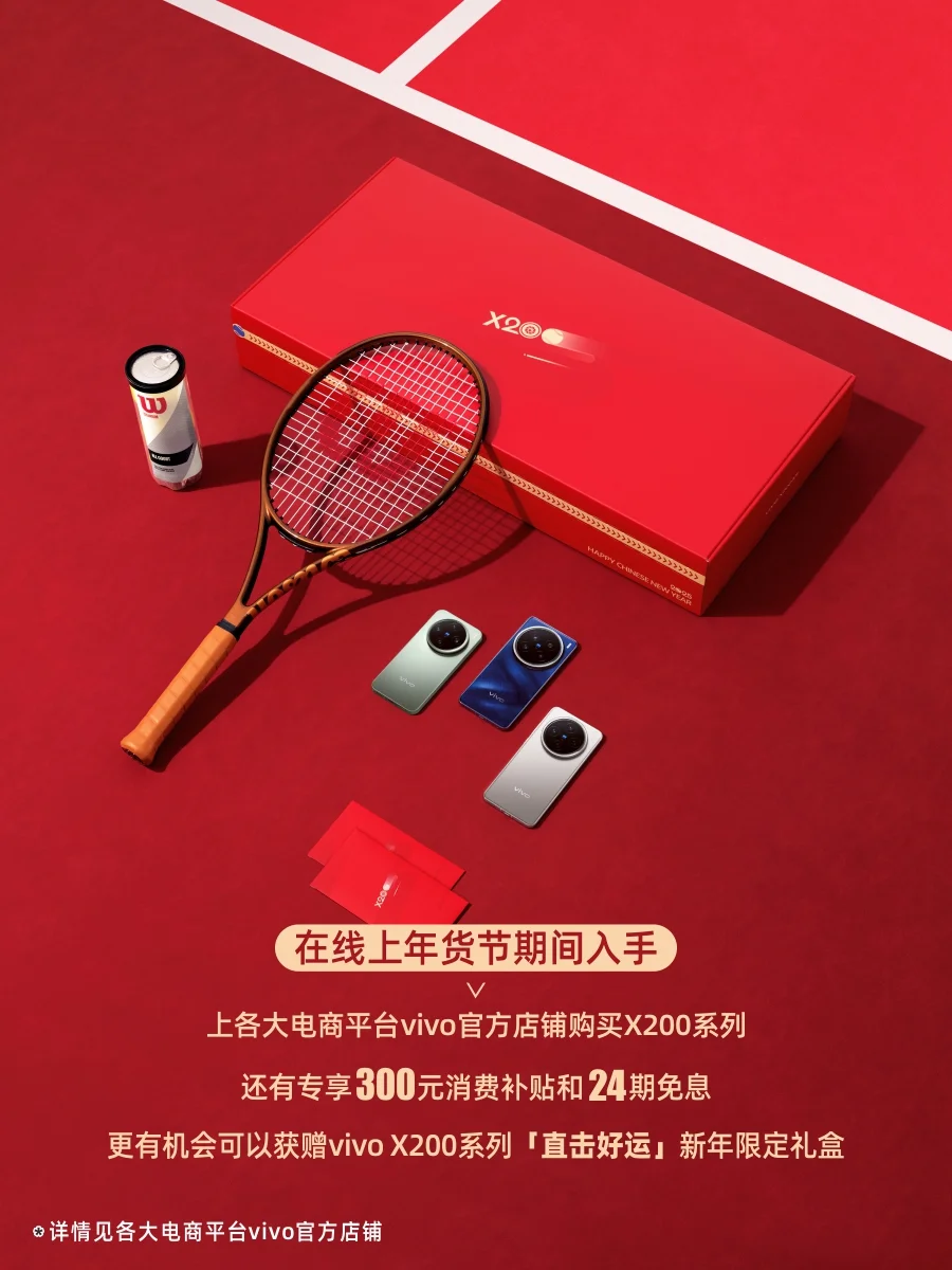 并且🛒线上年货节期间在vivo各电商平台官方旗舰店入手,X200系列专享至高300Yuan消费补贴,还有24期免息,还有机会获得vivo X200系列「直击好运」新年限定礼盒,限量发放,快去抢!