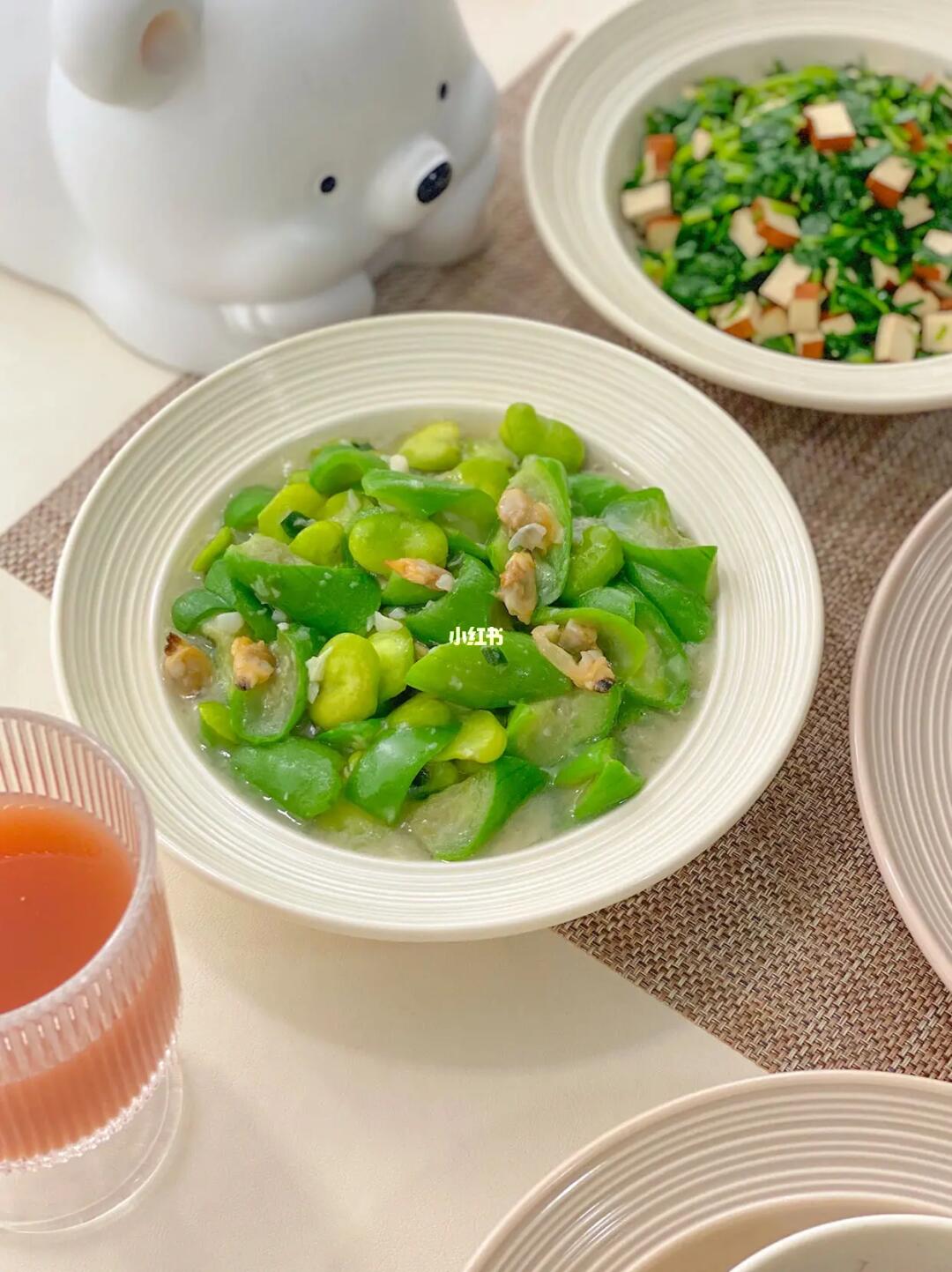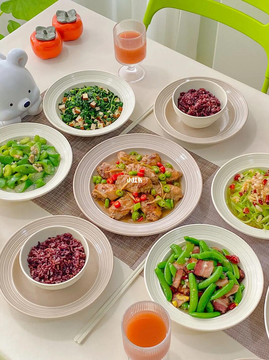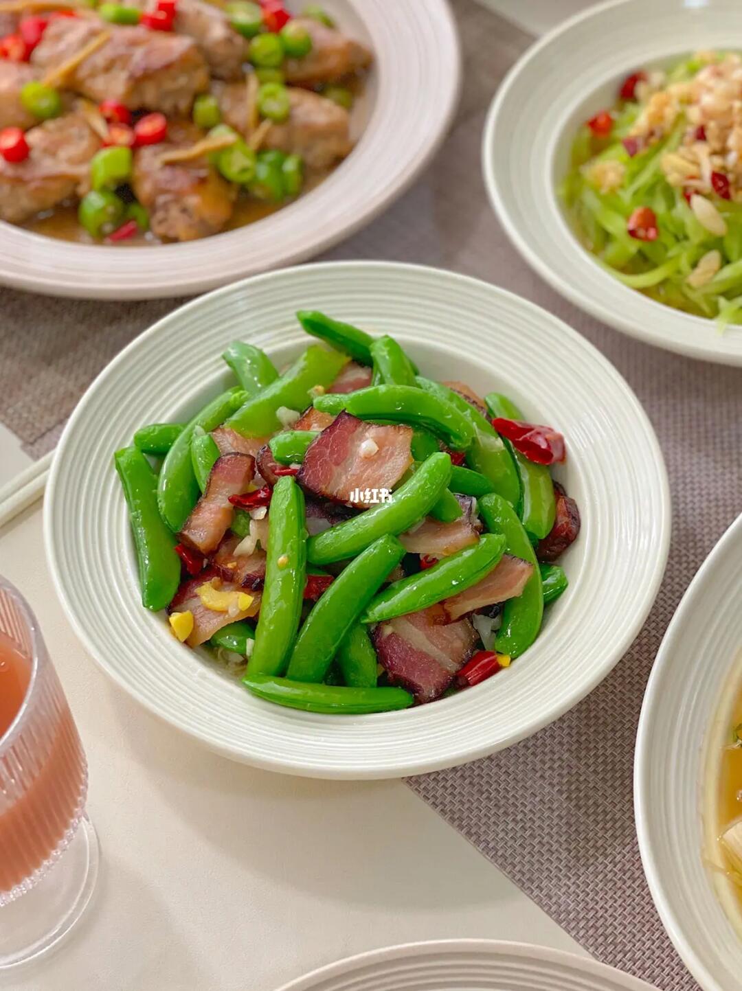 今日菜单🥣: 1️⃣香煎鸡翅 2️⃣金针菇蒸牛肉 3️⃣腊肉炒甜豆 4️⃣蛤蜊蚕豆炒丝瓜 5️⃣马兰头香干 6️⃣凉拌莴笋