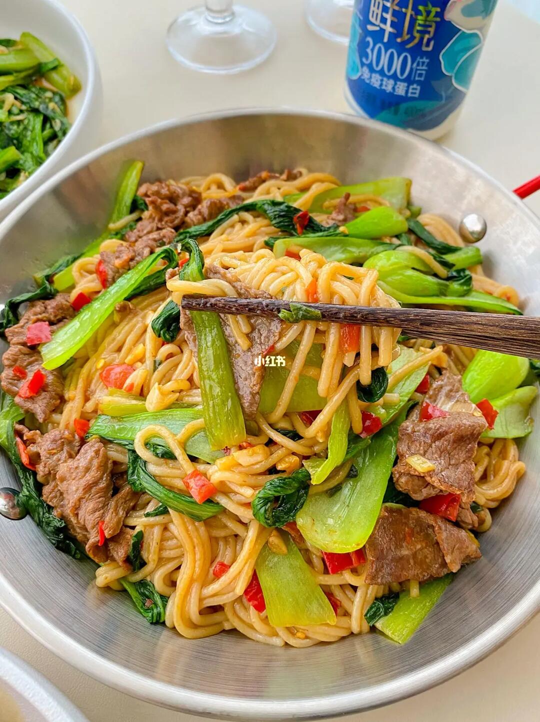 牛肉炒粉太解馋了,如果想吃更辣的,可以出锅的时候加辣椒油。开吃的时候,我还配上了红油榨菜,配红油酸豆角也很赞。