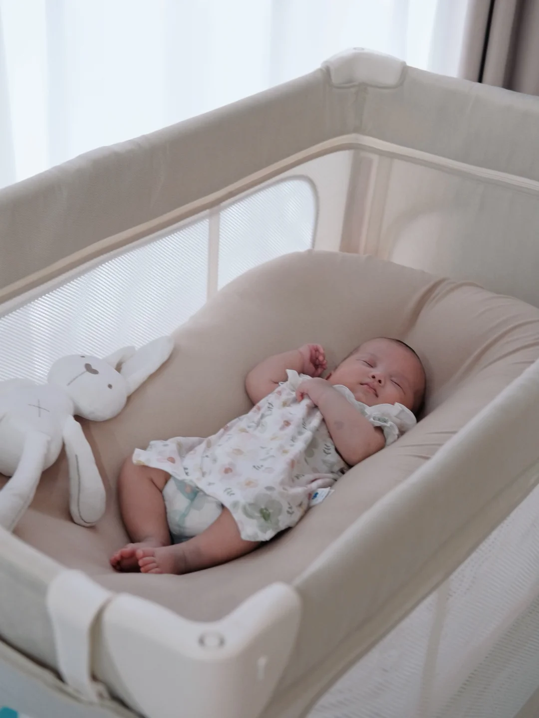还好孕期囤的舒适宝床中床没闲置,试着把哄迷糊的宝宝放进去,居然没醒!第一个救命细节是包裹感,我家宝宝天生缺乏安全感,放普通小床上总扭来扭去,床中床四周的凸起刚好“圈”住他,像窝在我怀里似的,宝宝小手不乱挥了,惊跳反应也轻了好多。现在喂完奶拍好嗝🤱,放进床里开点白噪音,几分钟就自己睡着啦。