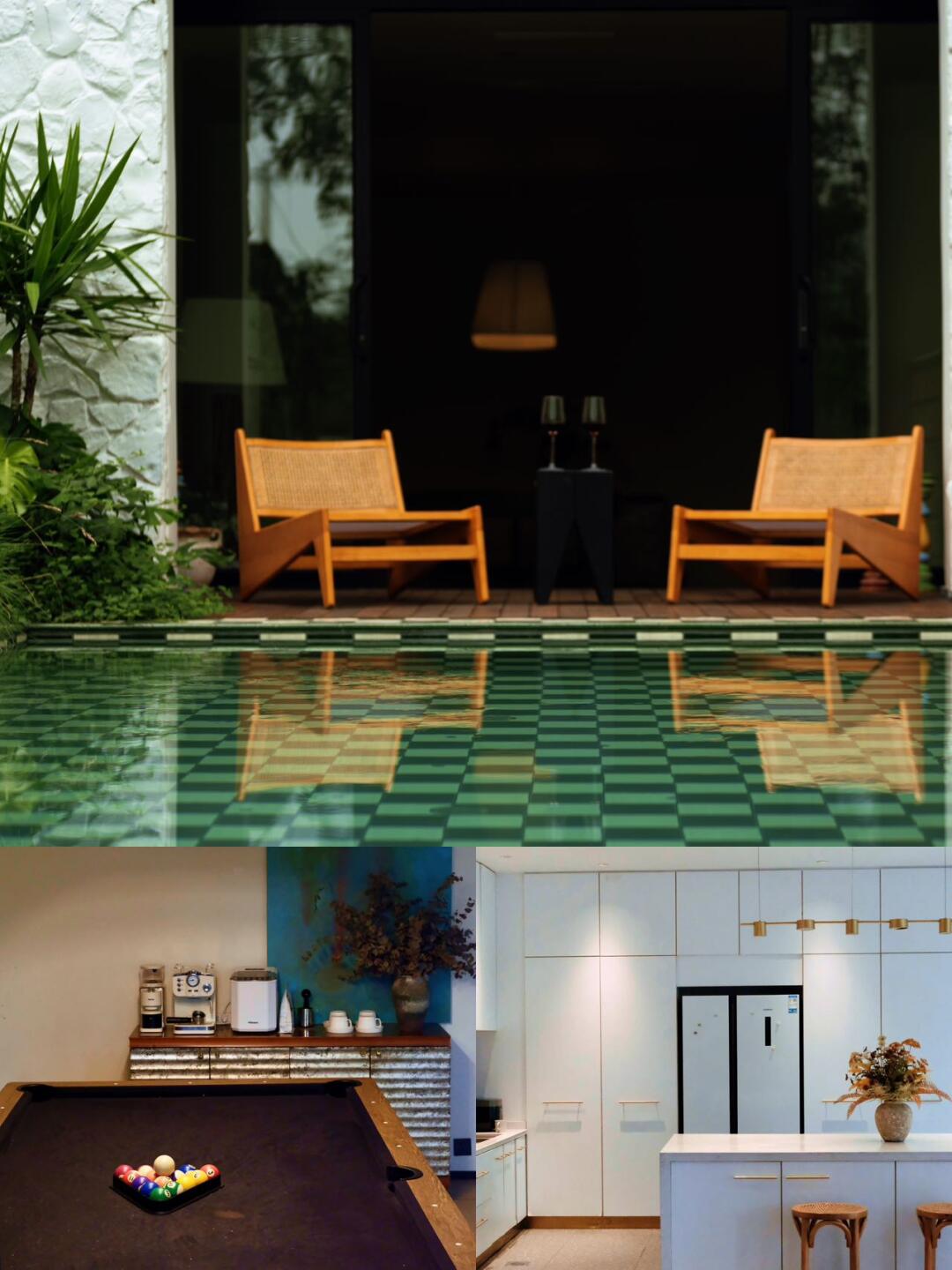 🏠别墅一共有5间房间,涵盖大床房、双床房、亲子套房,可以满足我们的入住需求。像我们这种好朋友一起约好来玩的,直接就包院聚会,整个空间都是我们的,非常自在呢!