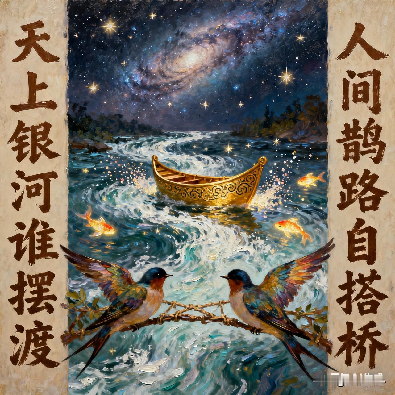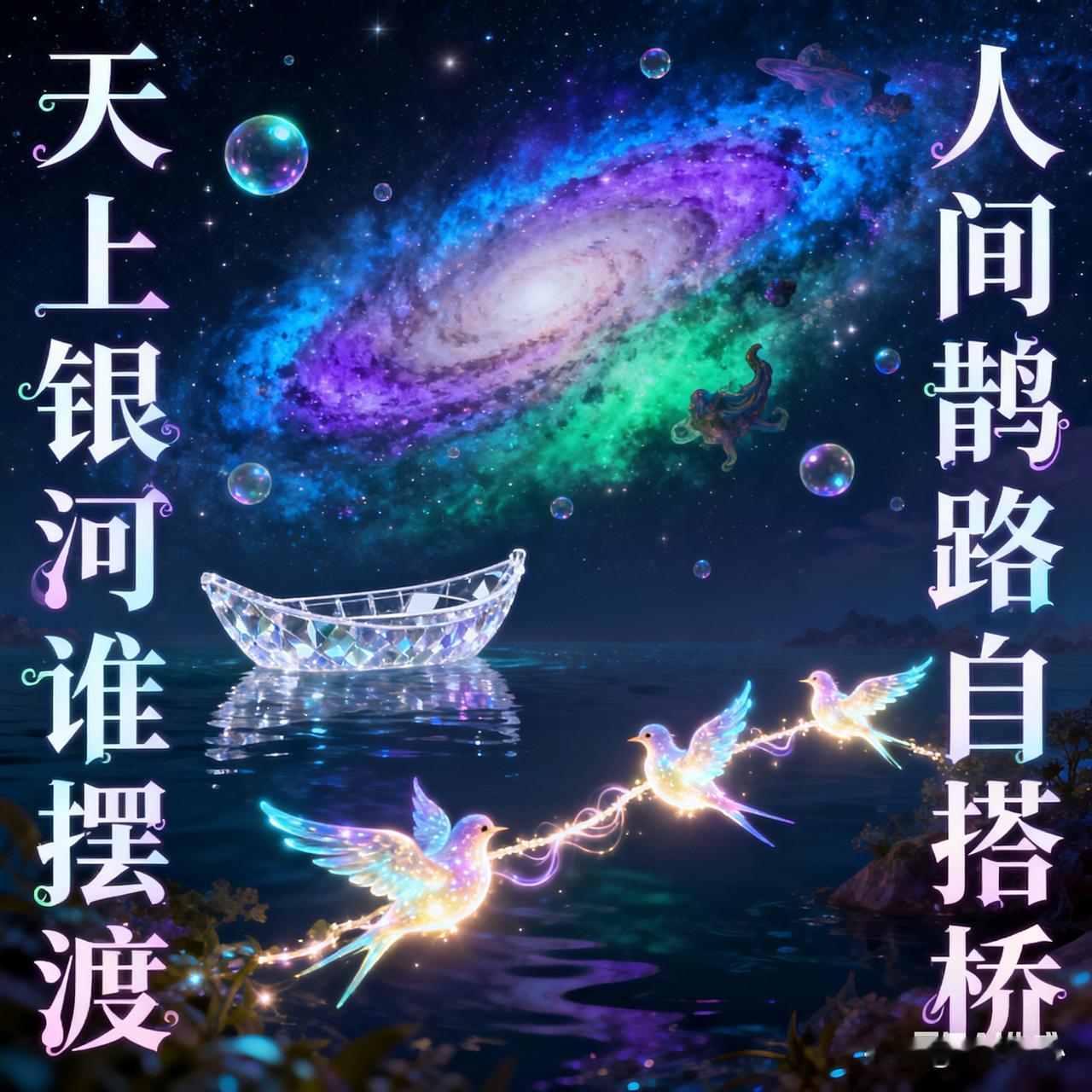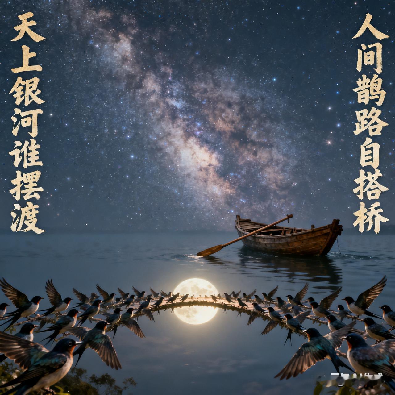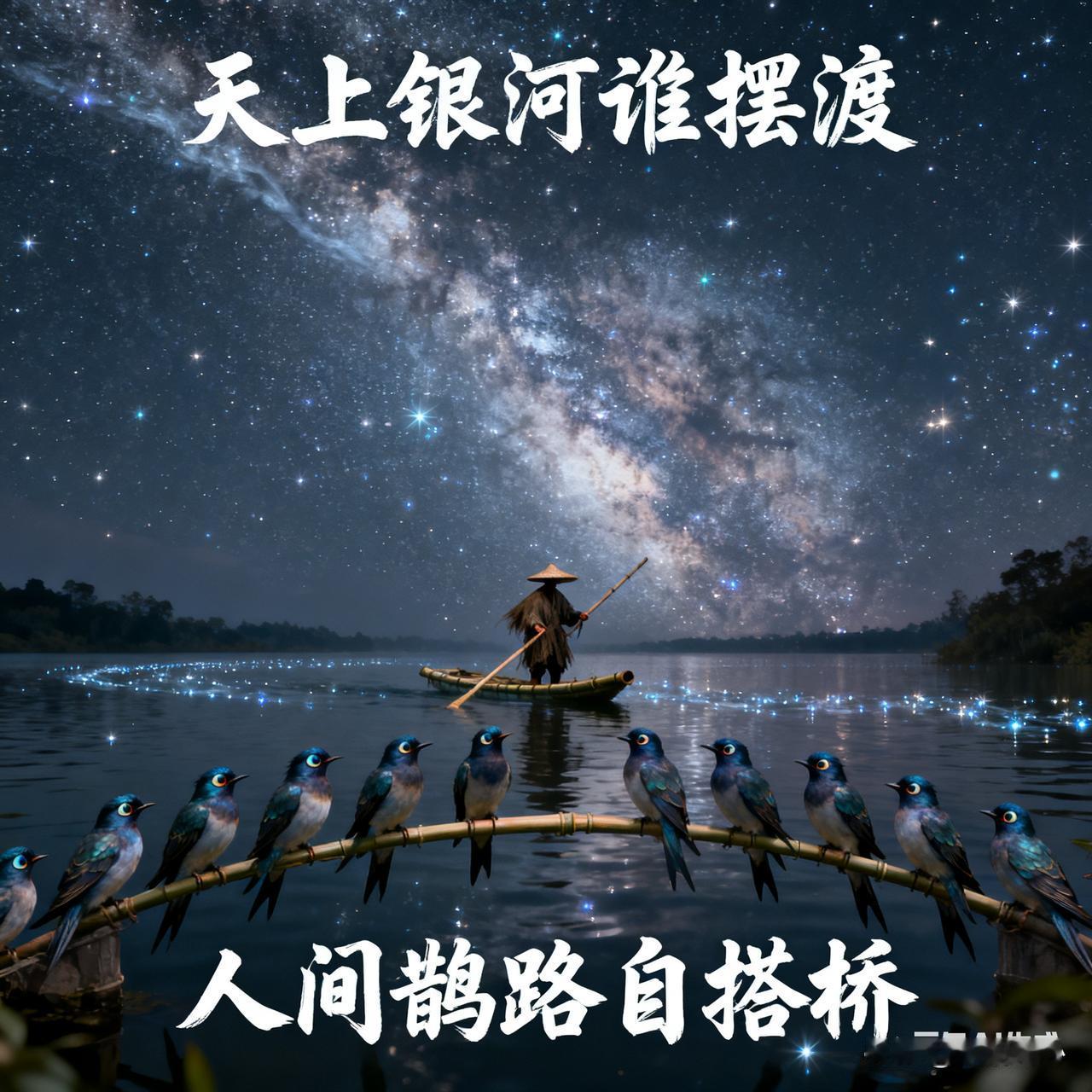 天上银河谁摆渡,下联你请人间鹊路自搭桥。