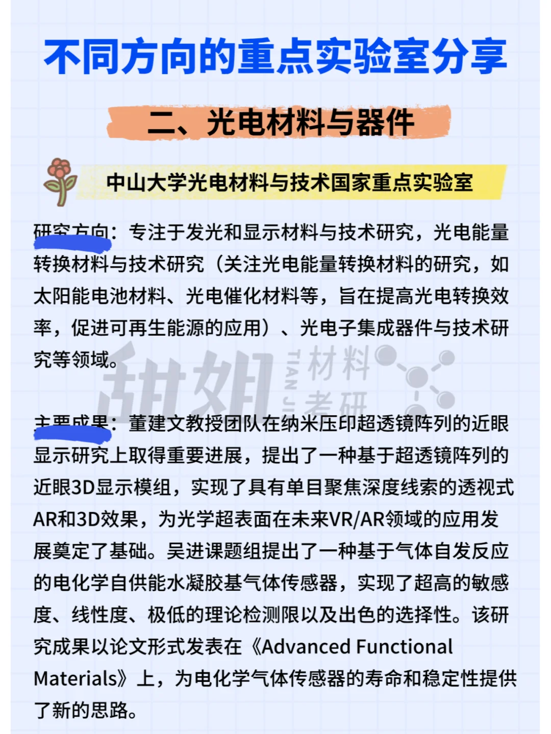 不知道同学们有考虑过考研上岸后读哪个方向的研究生吗?可能有的同学想选先进陶瓷与复合材料方向,或者说有的同学想选光电材料与器件等方向。 如果说你有想要选择的方向,但是不知道哪些学校在这方面的研究实力比较强劲。今天甜姐就带大家来看一看不同方向的重点实验室,希望能够给大家带来帮助。