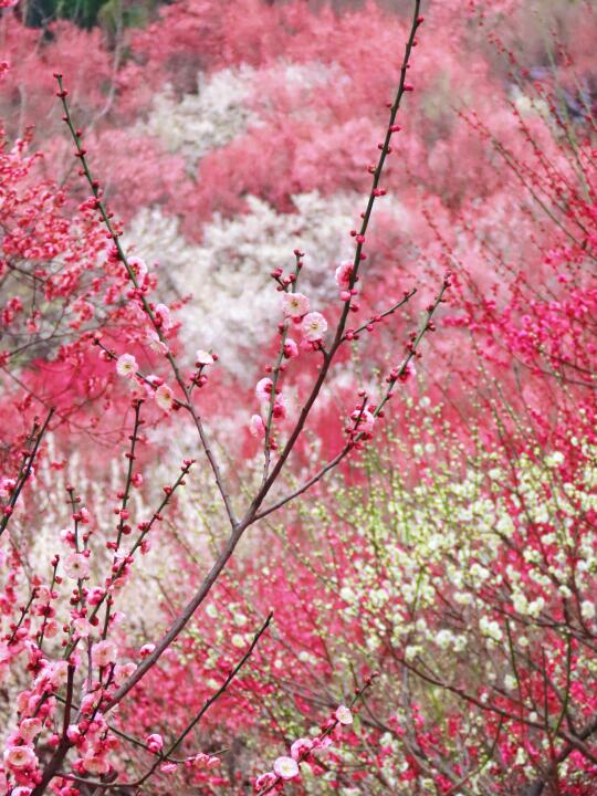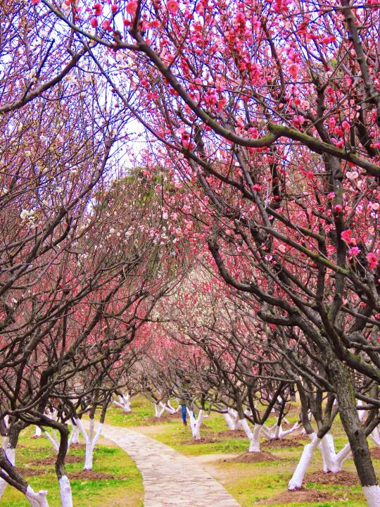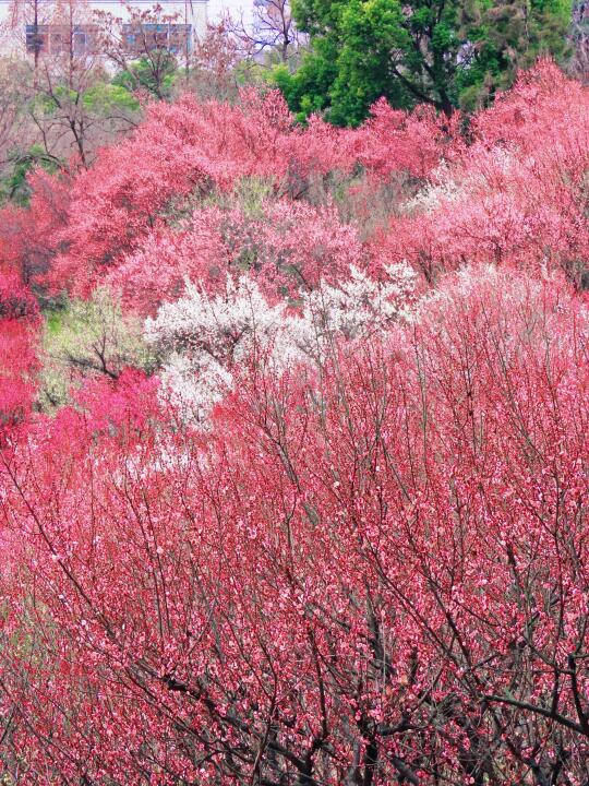 站在山坡的最高处,可以俯瞰整个梅岭的全景,盛开的梅花可以挡住游人,拍照还是好看的