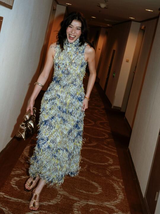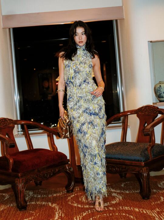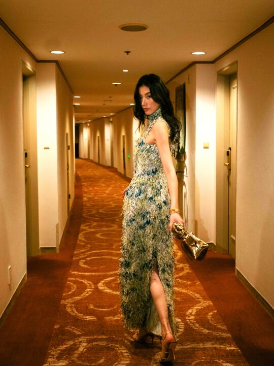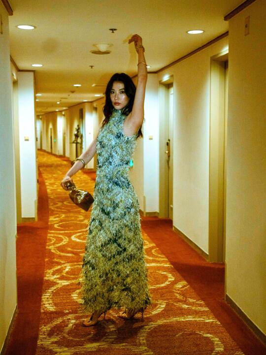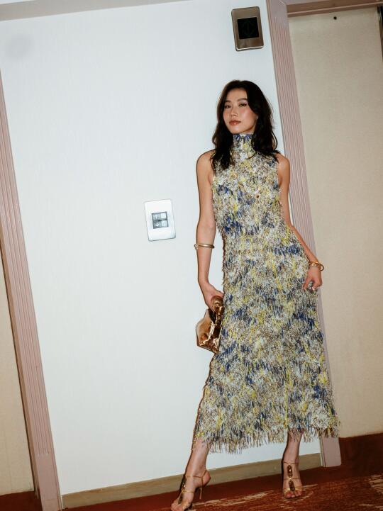 杨颖这身“叶脉”礼服太绝了!立体剪裁像把森林穿在身上,不管是短款的灵动还是长款的